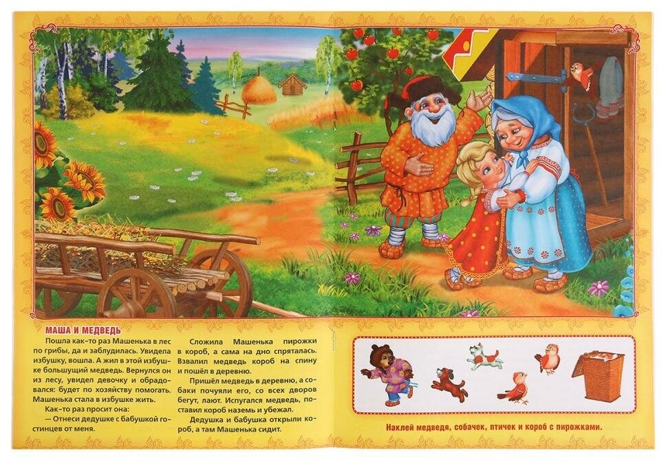 Книга с наклейками "Сказки малышам" - это необычное издание, которое представляет собой книгу, на страницах которой вы самостоятельно сможете размещать персонажей. Внизу страницы есть текст сказки, который заинтересует и увлечет ребенка. Рядом размещены специальные прямоугольники-подсказки, в которых изображены картинки с теми персонажами, чьи наклейки необходимо поместить на иллюстрацию. Такой необычный вид книги даст ребенку мотивацию более внимательно слушать сказку, ведь героев нужно будет расклеить в правильном порядке.