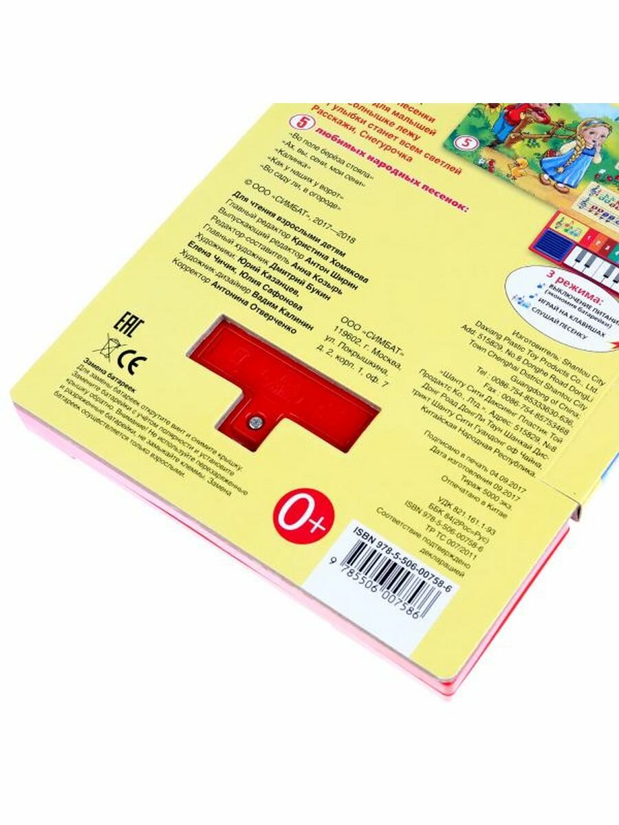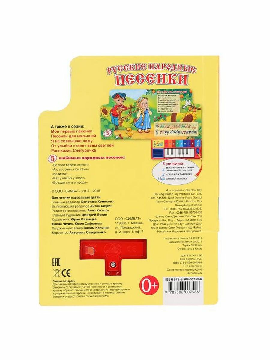 Русские Народные Песенки. (Книга-Пианино с 8 Клавишами и Песенками). (Сафонова Юлия (иллюстратор), Козырь Анна (редактор), Казанцев Юрий (иллюстратор), Чичик Елена В. (иллюстратор)); С-Трейд, 2017