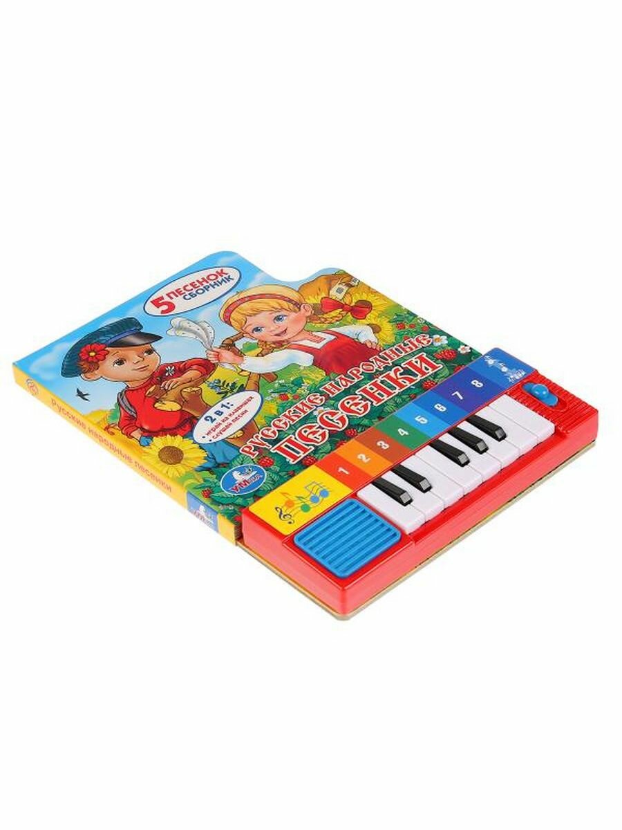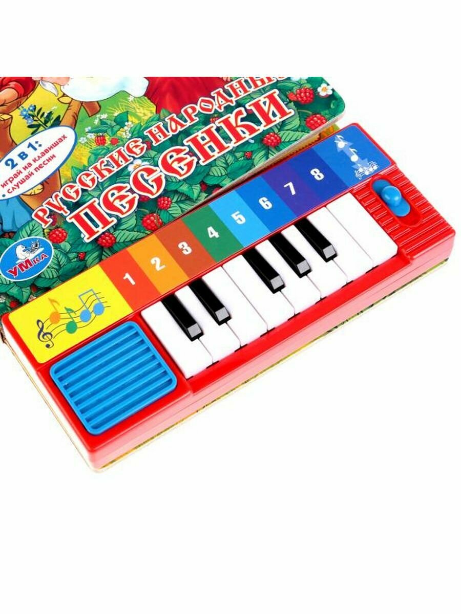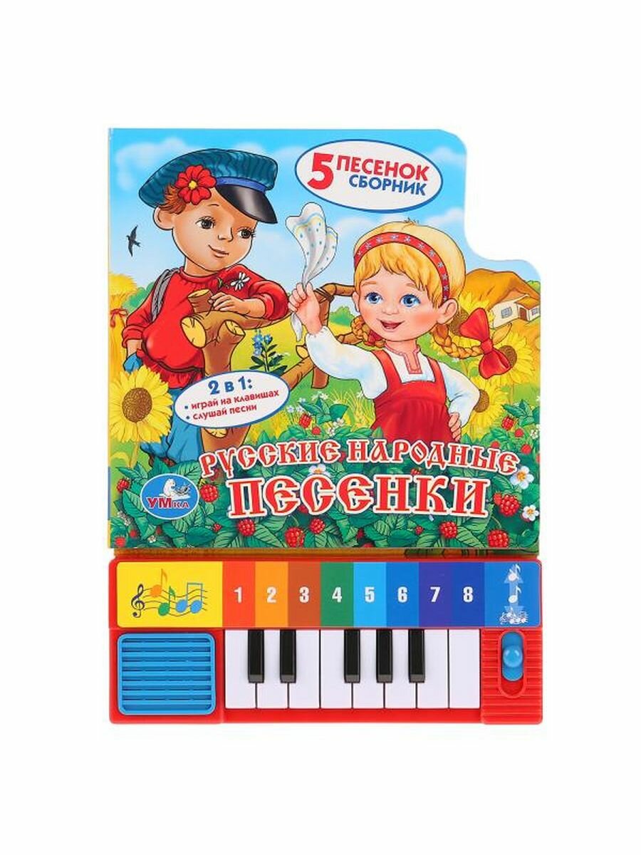 "Русские народные песенки" от компании "Умка" - это замечательная книжка, которая обладает функциями пианино. Проводить время с книгой действительно интересно, так как, прочитав песенку, ребенок сможет попытаться самостоятельно наиграть мелодию на маленьком пианино, подпевая музыке. В книжке имеется 5 веселых песенок.
