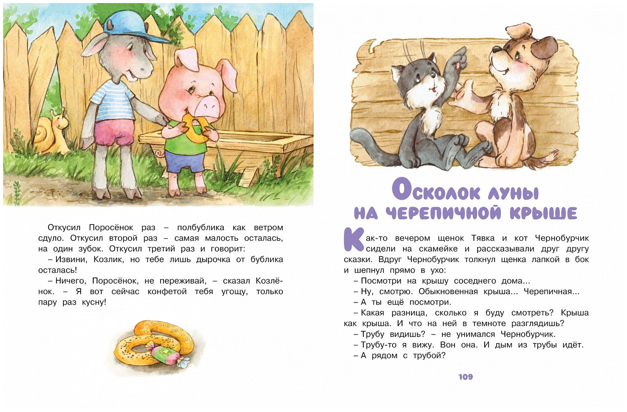 Небольшие рассказы для детей с добрыми и милыми иллюстрациями на каждом развороте. Прям эстетическое удовольствие разглядывать их. Ну а содержание несёт воспитательный посыл, после прочтения можно обсудить с ребёнком поднятые темы (дружба, уважение старших,гигиена , жадность и т д.) Книга не на один раз , читаем её периодически на протяжении 2 -х лет.