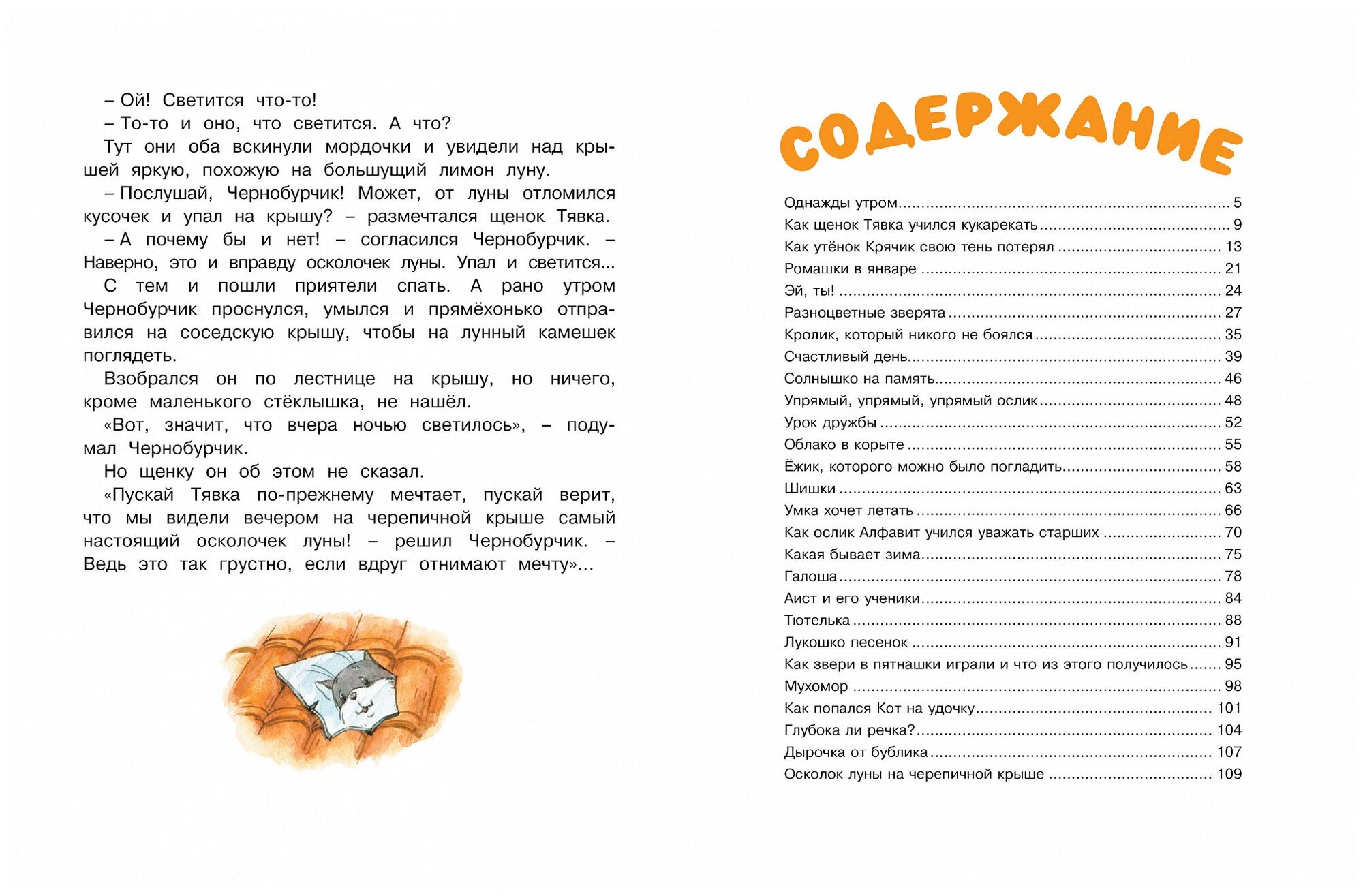 А вот и неправда! В книжке известного писателя Михаила Пляцковского чудеса на каждой странице. Разве не удивительно, что звери бывают разноцветными? А что вы скажете, если встретите ёжика, которого можно погладить? И уж совершенно невероятно - увидеть осколок луны на черепичной крыше!
