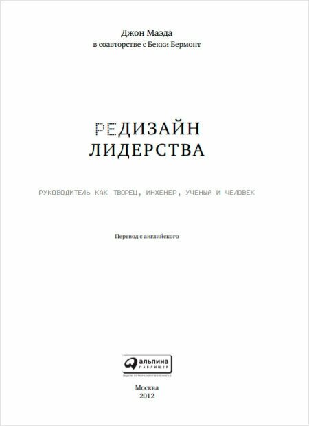 Редизайн лидерства: Руководитель как творец, инженер, ученый и человек / Джон Маэда в соавторстве с Бекки Бермонт ; Пер. с англ. — 2-е изд. — М. : Альпина Паблишер, 2022. — 103 с.