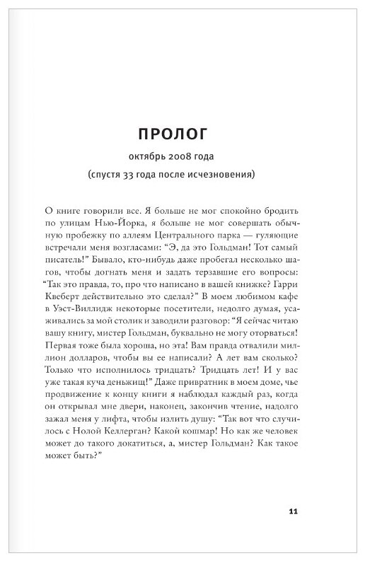 Книгу решилась приобрести, купившись на описание и... не прогадала. Сам сюжет интересен, читается легко и быстро. Шрифт достаточно удобен для чтения, а вот цвет бумаги несколько желтоват, хотя это и понятно, бумага типографская же, не офсетная... Итог: первое знакомство с творчеством этого молодого писателя-швейцарца Жоэля Диккера в лице этого произведения состоялось удачно.