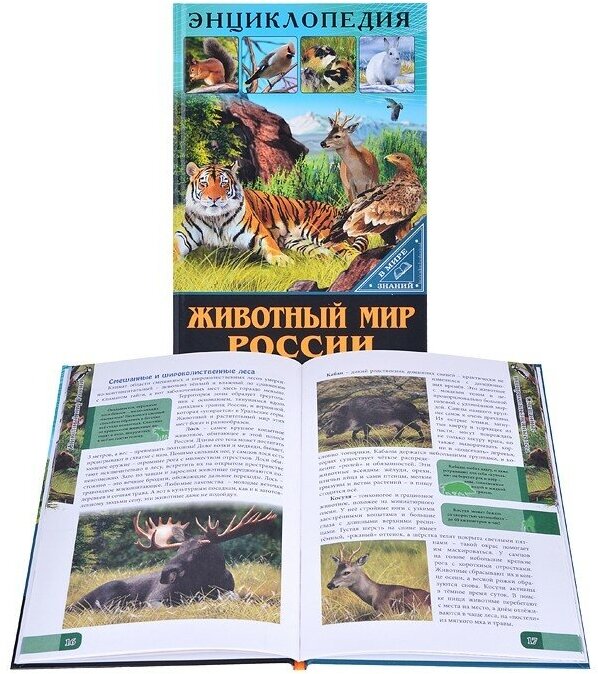 При покупки книги сравнивала её с другими о животном мире России. Выбором довольна. Критериями были: содержательность, многообразие видов, иллюстрации, цена. Книга бюджетный и замечательный вариант для первого знакомства ребёнка с природой нашей страны. Очень интересно и познавательно изложена информация о животном мире начиная от северной части и до субтропиков и пустынь. Самое главное, что текстовое содержание и красочные иллюстрации не совпадают с другими книгами этой серии. Бумага плотная, картинок много, краски насыщенные. Прилагаю фото:
