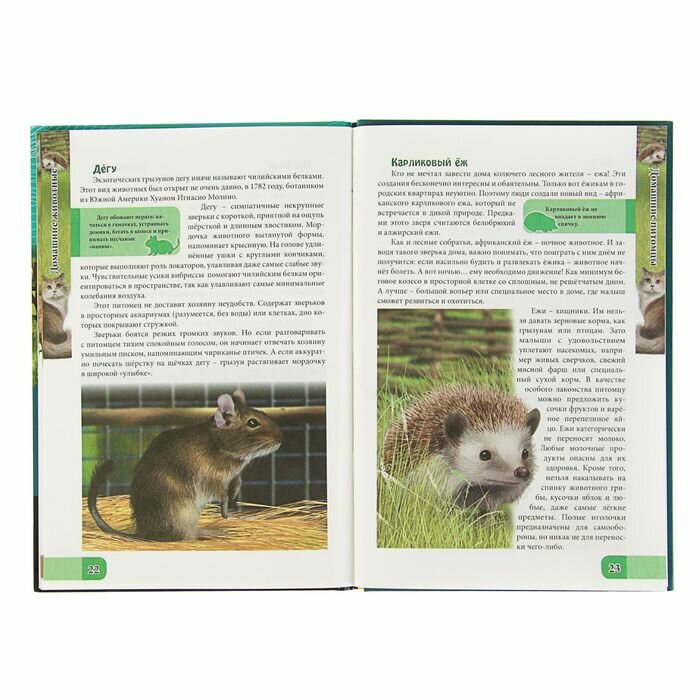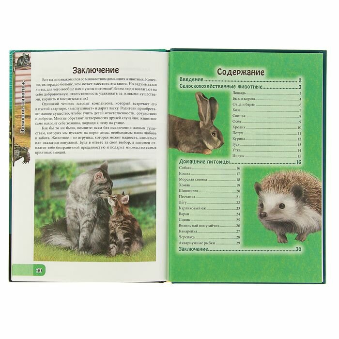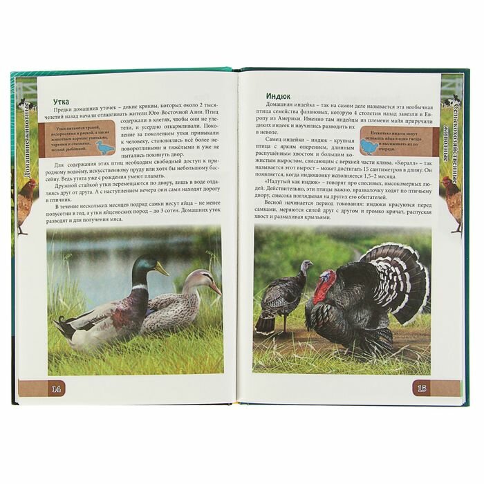 Покупала книгу в детский сад в подарок. Несмотря на то, что фон обложки темный, книга сразу привлекает внимание ярким заголовком. Сама энциклопедия тоненькая, легкая, текстовой информации вполне достаточно для детей 4-6 лет. Картинки - фотографии домашних животных и птиц большие и четкие. Очень понравилась.