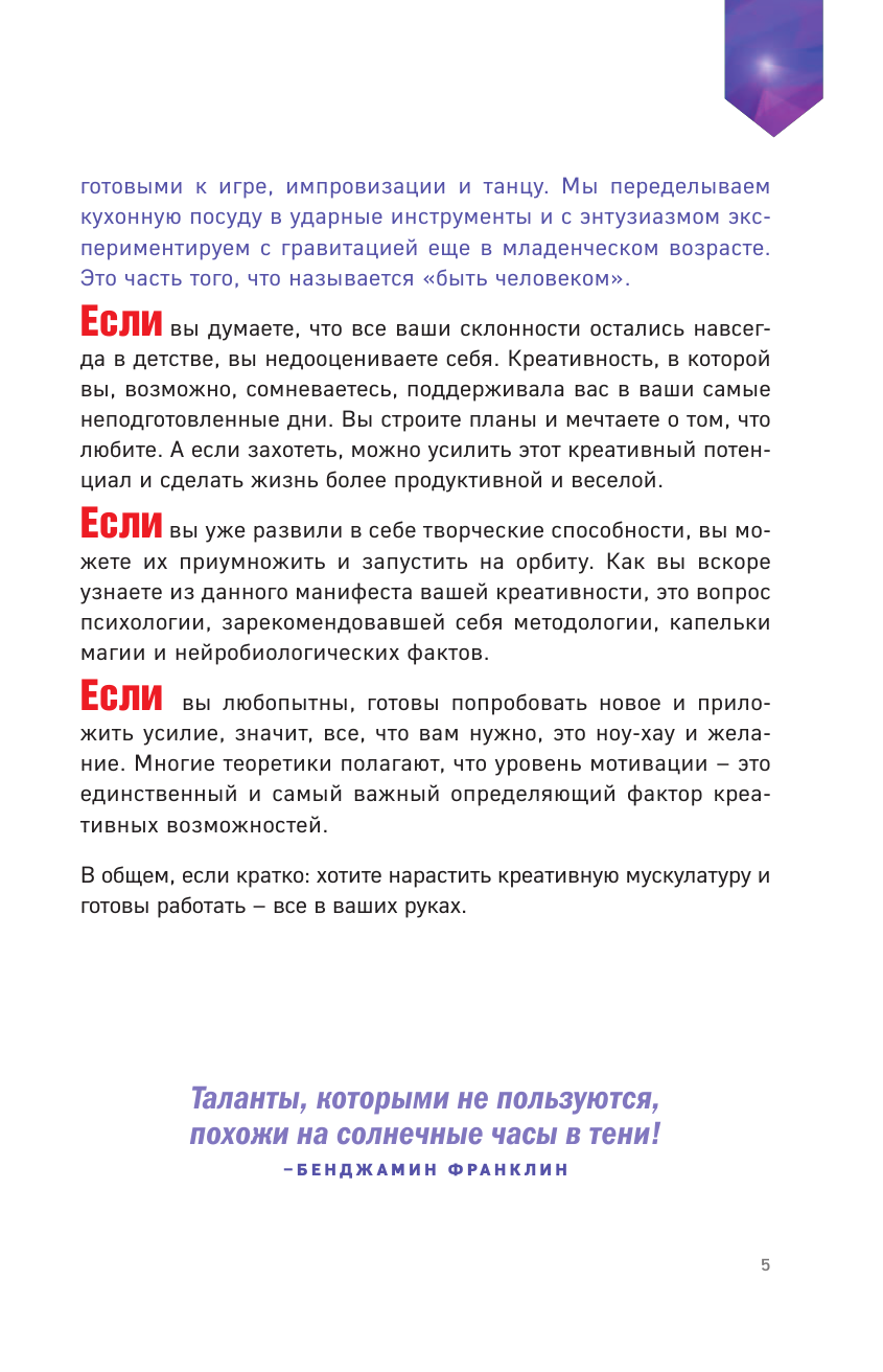 Этот пошаговый воображариум запустит мыслительную, писательскую, художественную, музыкальную и рабочую креативность. Практичная, весёлая и вдохновляющая, книга Курс креативного бойца раскроет тайны творческого процесса и сломает барьеры перед новым потенциалом. Погрузившись в эту сокровищницу идей для развития креативности, вы получите море удовольствия.