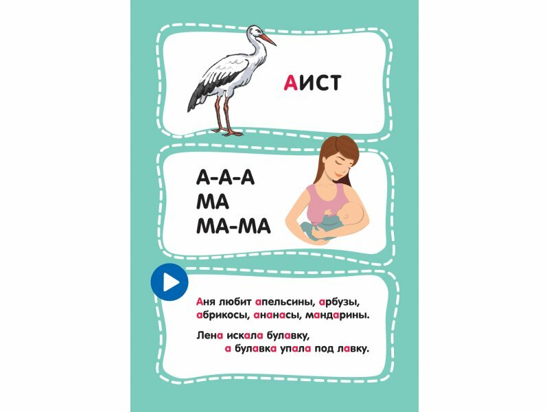 Отличное учебное пособие для мамы и малыша . Мама в удобном формате может сама провести занятие и выучить алфавит со своим дитем. Карточки уникальные , не мнутся , не царапаются, покрыты как будто глянцем. Рисунок привлекателен ! Буквы крупные , запоминающиеся. Поэтому не составит особого труда учиться вместе в ребенком
