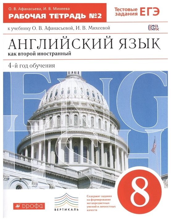 Сервис сравнения цен СкидкаГИД предлагает сравнить цены на товар «Книга: Английский язык как второй иностранный: четвертый год обучения. 8 класс. Рабочая тетрадь в 2-х частях. Часть 2 (Афанасьева О. В, Михеева И. В.); ДРОФА, 2017»