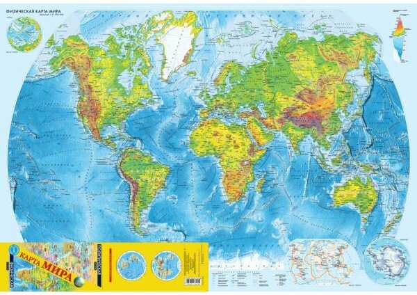 Карту купили сыну для домашних заданий по географии. Карта на свою цену. Для уроков подходит отлично. Европа выделена отдельно в увеличенном маштабе. Флаги стран проставлены прямо на карте на странах, а не на полях как на других картах. Карта двухсторонняя, т.ч. на стенку вешать не удобно.