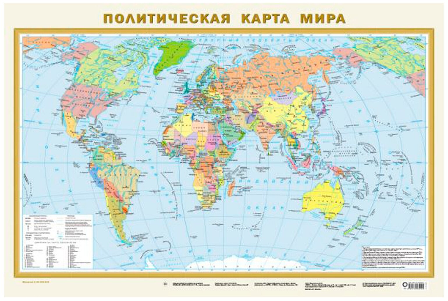 Эта настенная карта, покрытая с лицевой стороны полимерной плёнкой, имеет размеры 870х580 мм. На Политической карте мира масштаба 1:40 000 000 (в 1 см 400 км) показаны все независимые государства мира с их столицами, а также владения и территории с особым статусом. Населённые пункты на карте даны в трёх градациях численности: более 1 млн жителей, от 100 тыс. до 1 млн, менее 100 тыс. жителей. Рекомендовано для широкого круга пользователей. Карта упакована в прозрачный тубус (пакет с объёмным дном и еврослотом) из мягкого пластика. Размеры тубуса: длина 590 мм, диаметр 50 мм.