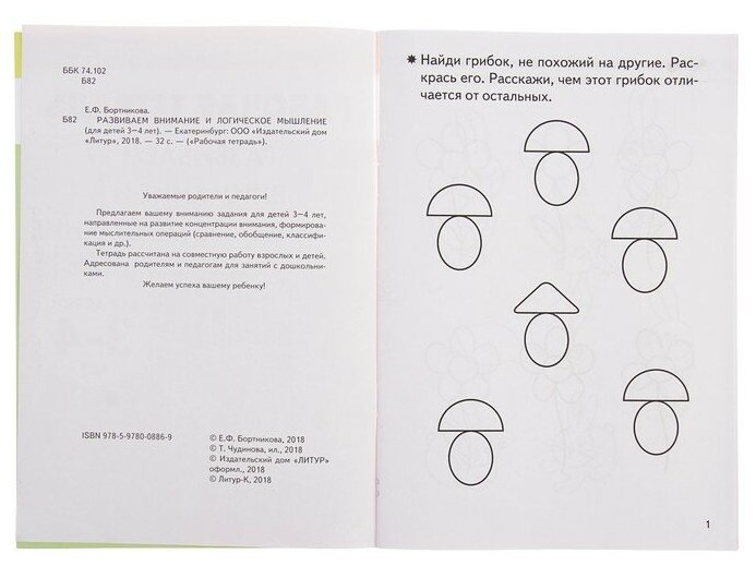 Развиваем внимание и логическое мышление (для детей 3-4 лет). Рабочая тетрадь. (Бортникова Елена Федоровна); Литур, 2015