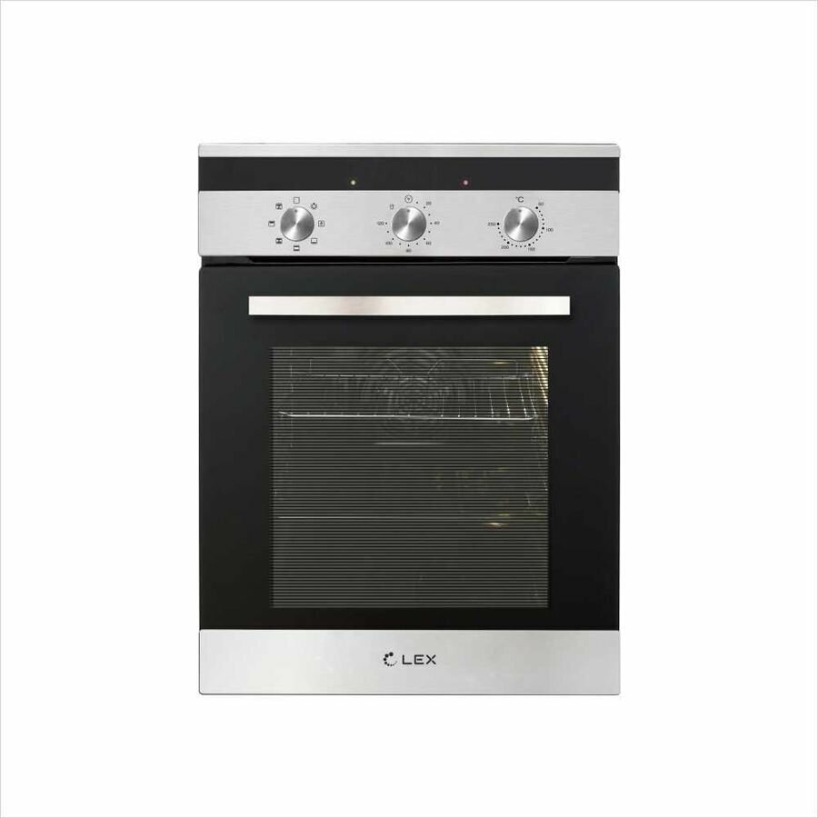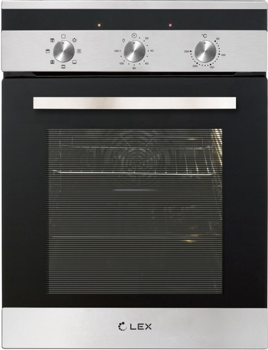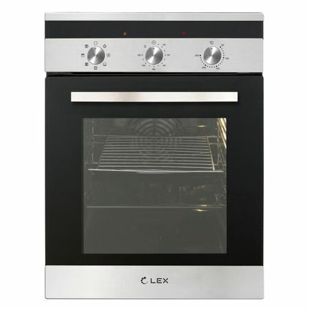Духовой шкаф Lex нержавеющая сталь/черный, электрическая духовка, объём 55л, покрытие: эмаль легкой очистки, электрический гриль, программ духовки: 7, независимое управление, переключатели поворотные