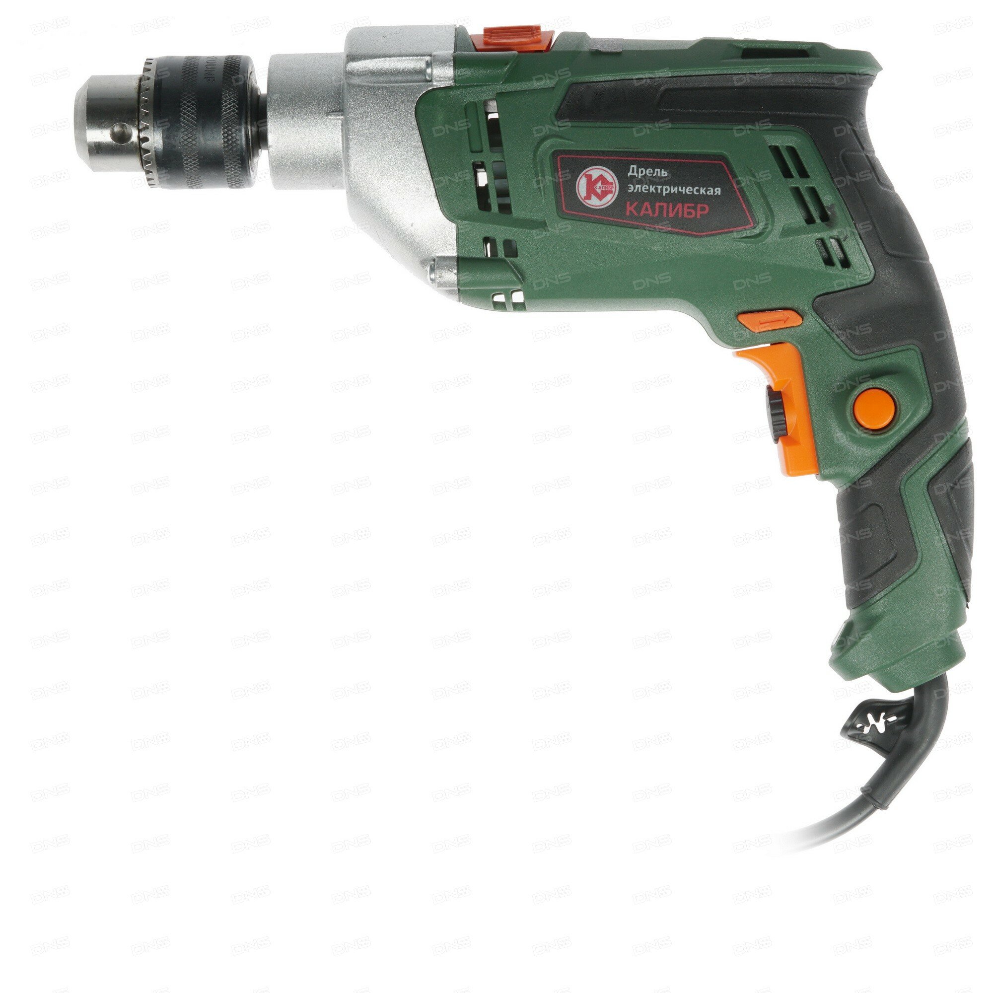 Ручная электрическая ударная дрель (ударная сверлильная машина) Калибр + предназначена для сверления отверстий в цветных и чёрных металлах, пластмассах, дереве, кирпиче, бетоне и других строительных материалах.