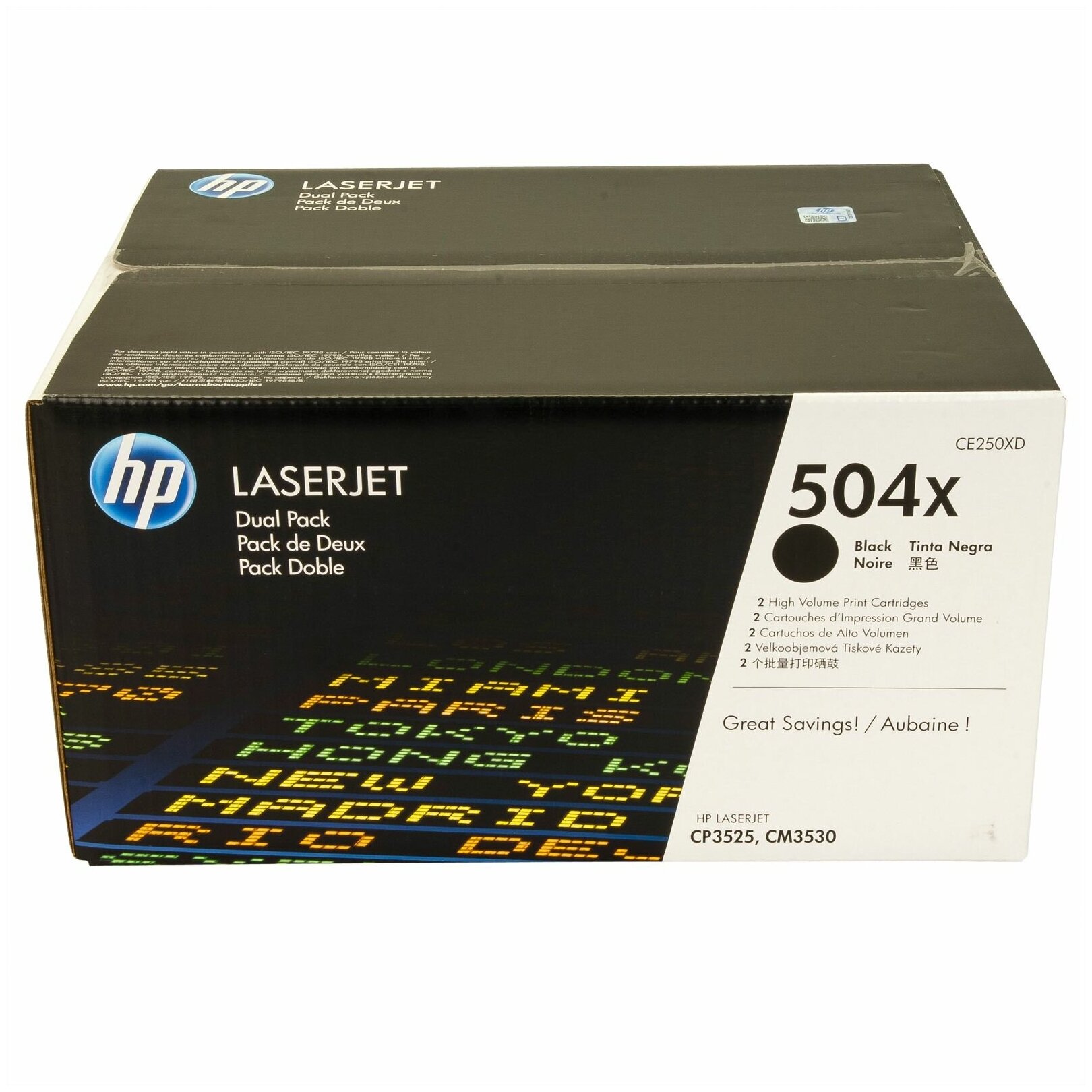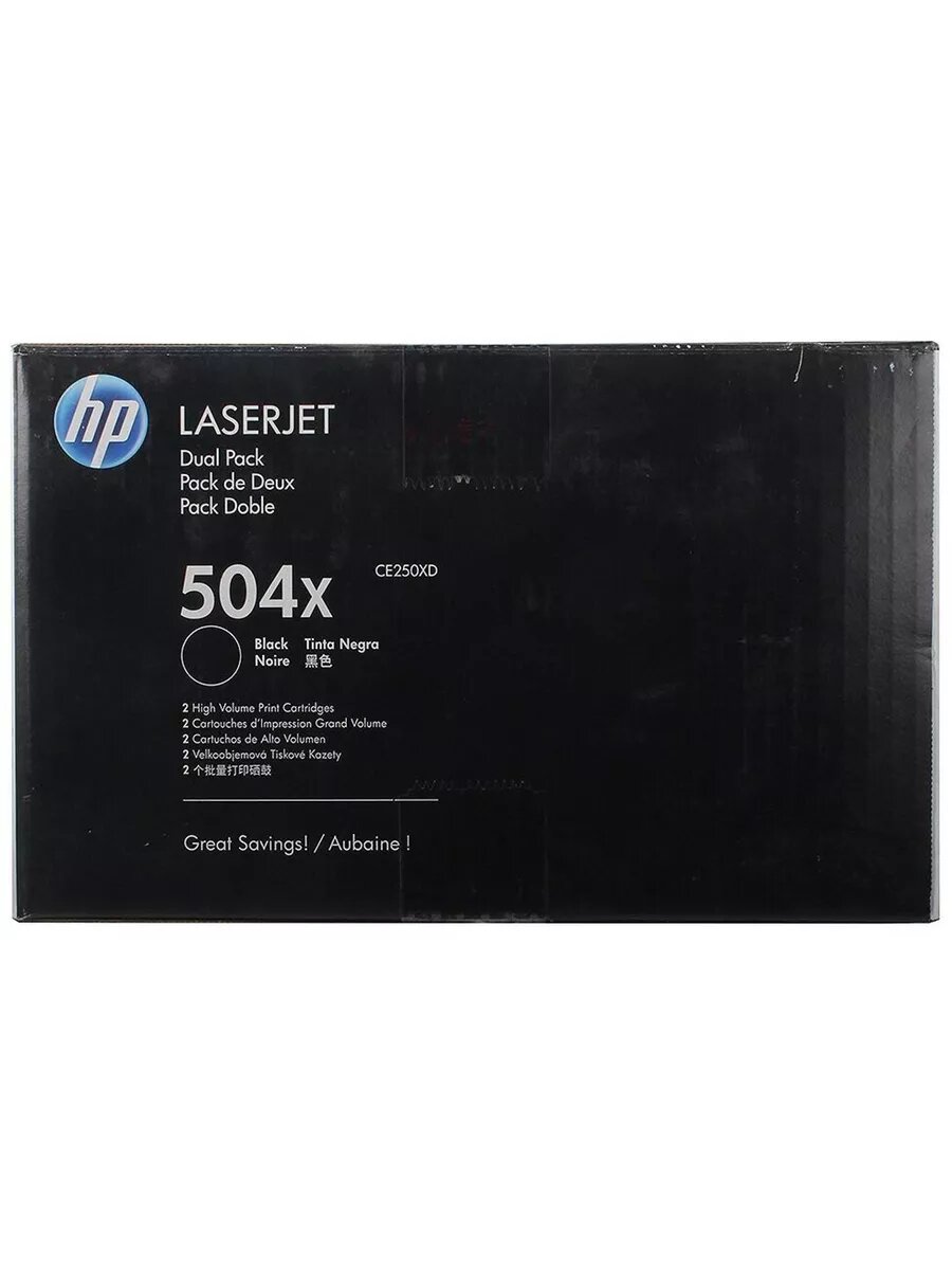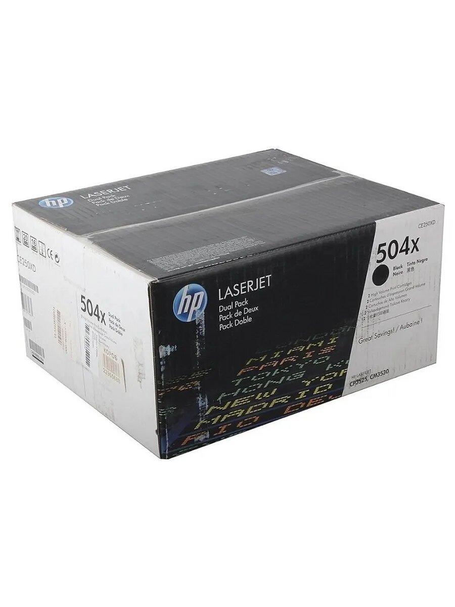 Картридж Hewlett-Packard для Color LaserJet CP3525/CM3530 (2 x 10 500 стр.) черный. Черные картриджи HP 504X LaserJet с тонером в двойной упаковке более выгодны по сравнению с отдельными картриджами, что делает печать доступнее. Сохраняйте производительность, всегда имея под рукой дополнительный картридж. Производите документы профессионального качества, которые производят впечатление. Возможности Печатайте и экономьте.