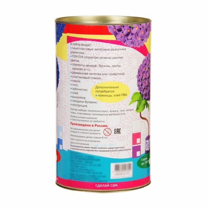 | Описание | Набор для творчества топиарий "Незабудка" поможет вам освоить новый вид прикладного творчества - создания топиария. Топиарий - это декоративное деревце, сделанное из различных подручных средств (начиная от лоскутов ткани и бумаги, заканчивая зернами кофе). Деревце станет прекрасным сувениром и украшением интерьера.,Все необходимые заготовки есть в наборе, дополнительно понадобятся только ножницы и клей ПВА. |