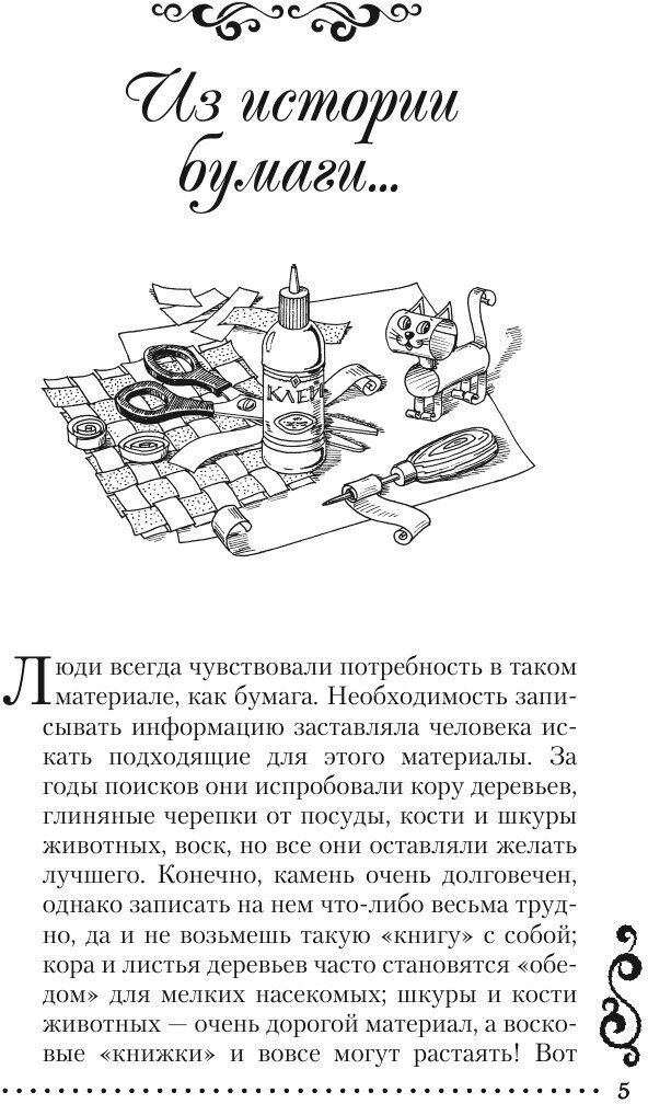 Мне нравится работать с бумагой. Книг, в которых дается описание такого количества видов работы с ней, не так уж и много. Поэтому я и приобрел эту книгу и собираюсь рекомендовать ее своей внучке-первоклашке. В книге нет очень подробных фотографий этапов изготовления поделок, но это как раз и заставляет самостоятельно продумывать процесс работы, что способствует развитию творческого мышления.