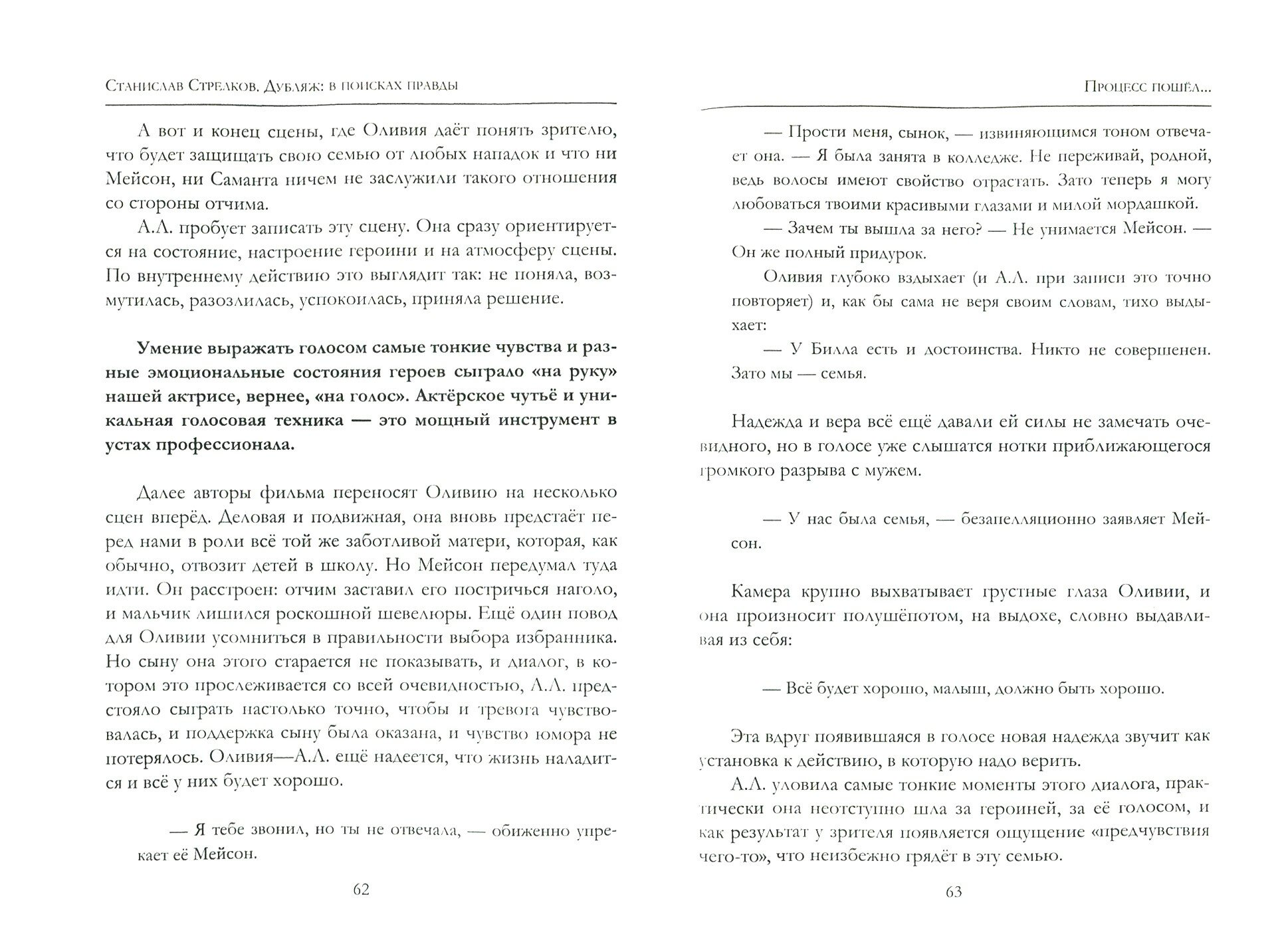 Книга "ДУБЛЯЖ: в поисках правды" - это не пересказ сюжета, а подробное описание кропотливой работы актёра дубляжа: поиск голоса, характера, взаимоотношения партнеров через диалоги, создание атмосферы, настроения каждой сцены, взаимодействие коллег в творческом процессе озвучания.