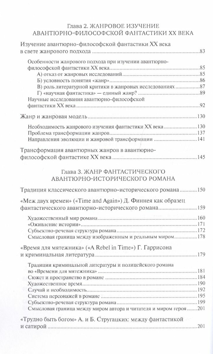 Отдельная глава посвящена вопросам теории жанра и жанровой эволюции, продуктивности жанрового подхода при изучении авантюрно-философской фантастики XX века.