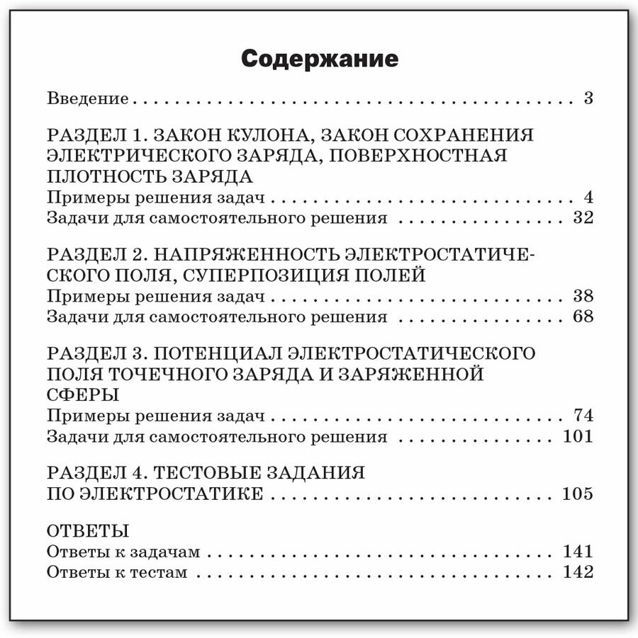 В сборнике представлено двести разноуровневых задач по электростатике. Все задачи распределены по трем основным разделам. В начале раздела приводится подробный разбор типовых задач с использованием геометрического подхода к их решению. Кроме разобранных задач даны задания для самостоятельного решения, а также 12 вариантов тестовых заданий для контроля знаний учащихся. Ко всем задачам и тестовым заданиям в конце задачника даны ответы.