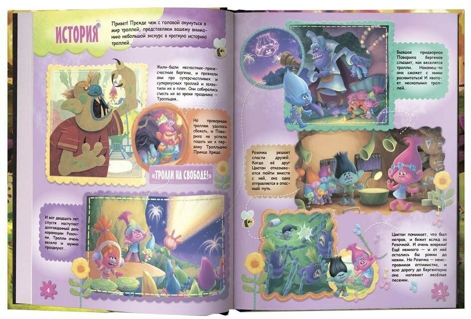 Книга большая и интересная. У меня две девочки 11 и 7 лет, обеим очень понравилось. Есть и про троллей ,и про бергенов, есть замок бергенов на целый разворот. Написано почти про каждого героя, все крупно, ярко . Думаю и детям помладше будет интересно. Даже если не читать, много всего есть просто разглядывать. Любителям мультфильма советую, не разочаруетесь) прикрепляю несколько фото)