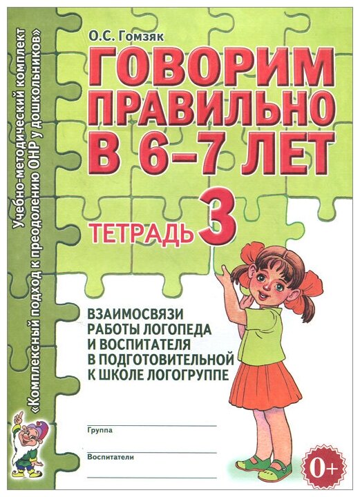 Говорим правильно в 6-7 лет. Тетрадь 3 взаимосвязи работы логопеда и воспитателя в подготовительной к школе логогруппе (Гомзяк Оксана Степановна); Гном, 2022