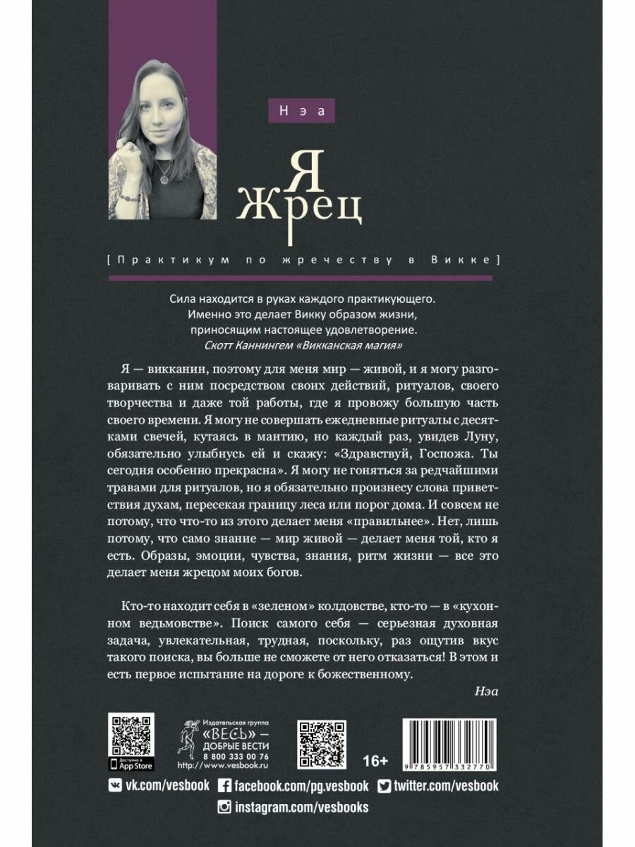 Уникальное издание по жречеству и пониманию традиций, согласна с предыдущими отзывами, что такой литературы на сегодняшний день крайне мало. Книга описывает работу в жречестве по существу, и хоть имеет отношение большей частью именно к викканской традиции, знания, изложенные в ней, можно применить и в других родственных магических традициях. Мне книга была крайне полезной и достойно пополнила магическую библиотеку. В содержании даются не размытые знания, а конкретная информация, как можно планировать работу с божествами и силами природы, как избежать неочевидных ошибок на своем пути. Ценно, что автор дает знания на основании собственного опыта. Рекомендую книгу всем интересующимся данной темой.