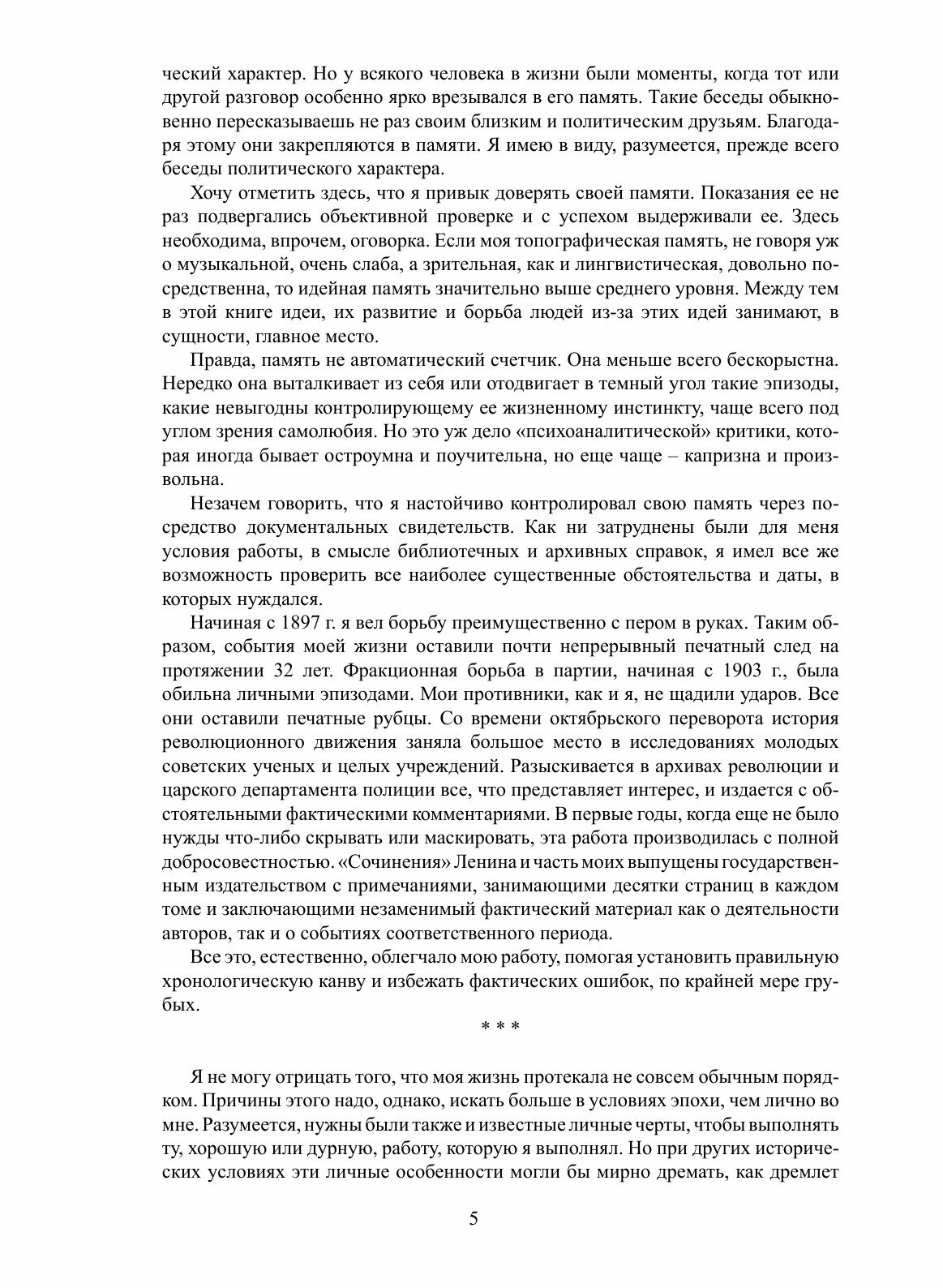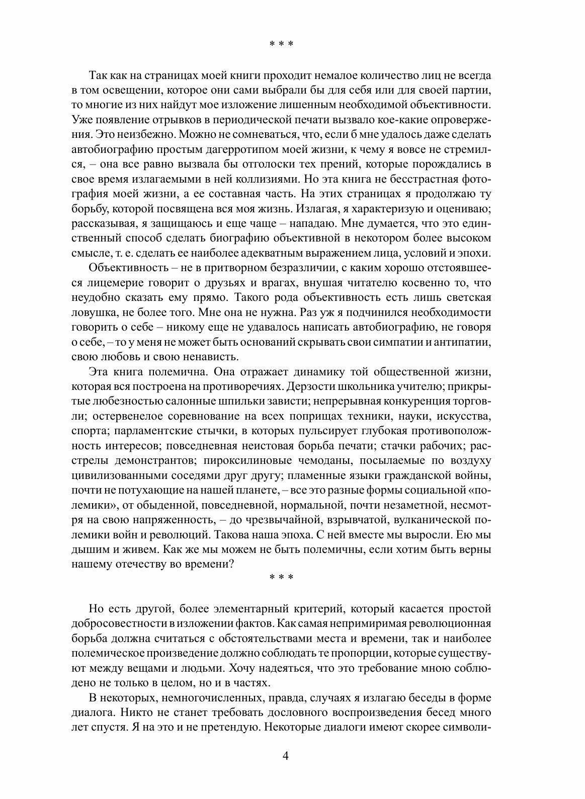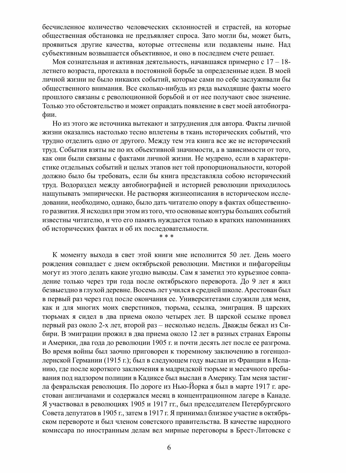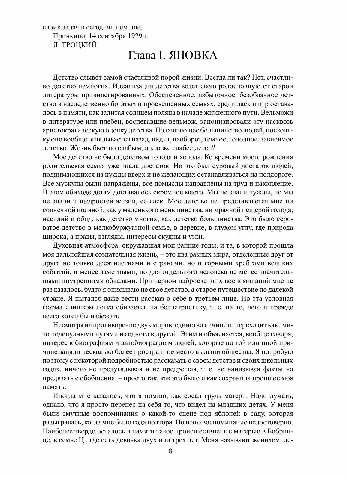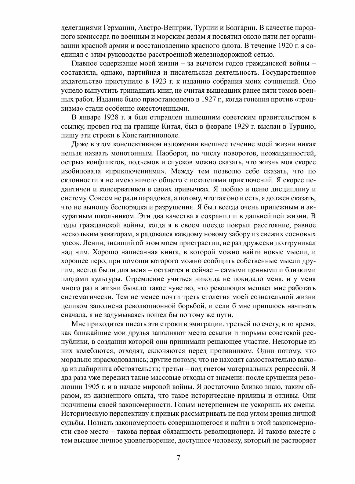 Книга Льва Троцкого «Моя жизнь» – незаурядное литературное произведение, подводящее итог деятельности этого поистине выдающегося человека и политика в стране, которую он покинул в 1929 году. В ней представлен жизненный путь автора – от детства до высылки из СССР., "По числу поворотов, неожиданностей, острых конфликтов, подъемов и спусков, – пишет Троцкий в предисловии, – можно сказать, что моя жизнь изобиловала приключениями… Между тем я не имею ничего общего с искателями приключений». Если вспомнить при этом, что сам Бернард Шоу называл Троцкого «королем памфлетистов», то станет ясно, что «опыт автобиографии» Троцкого – это яркое, увлекательное, драматичное повествование не только свидетеля, но и прямого «созидателя» истории XX века.