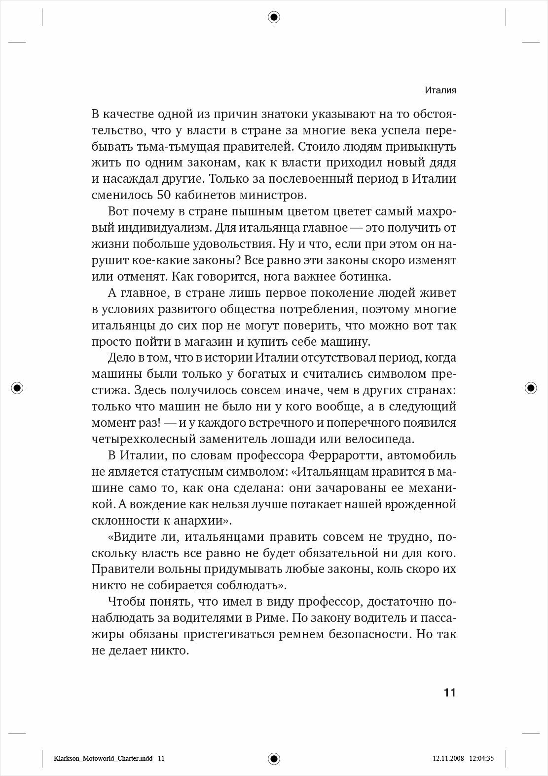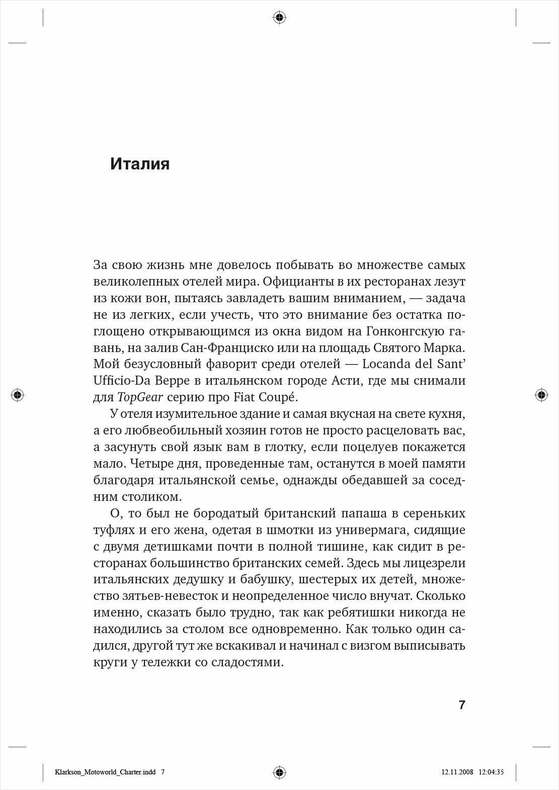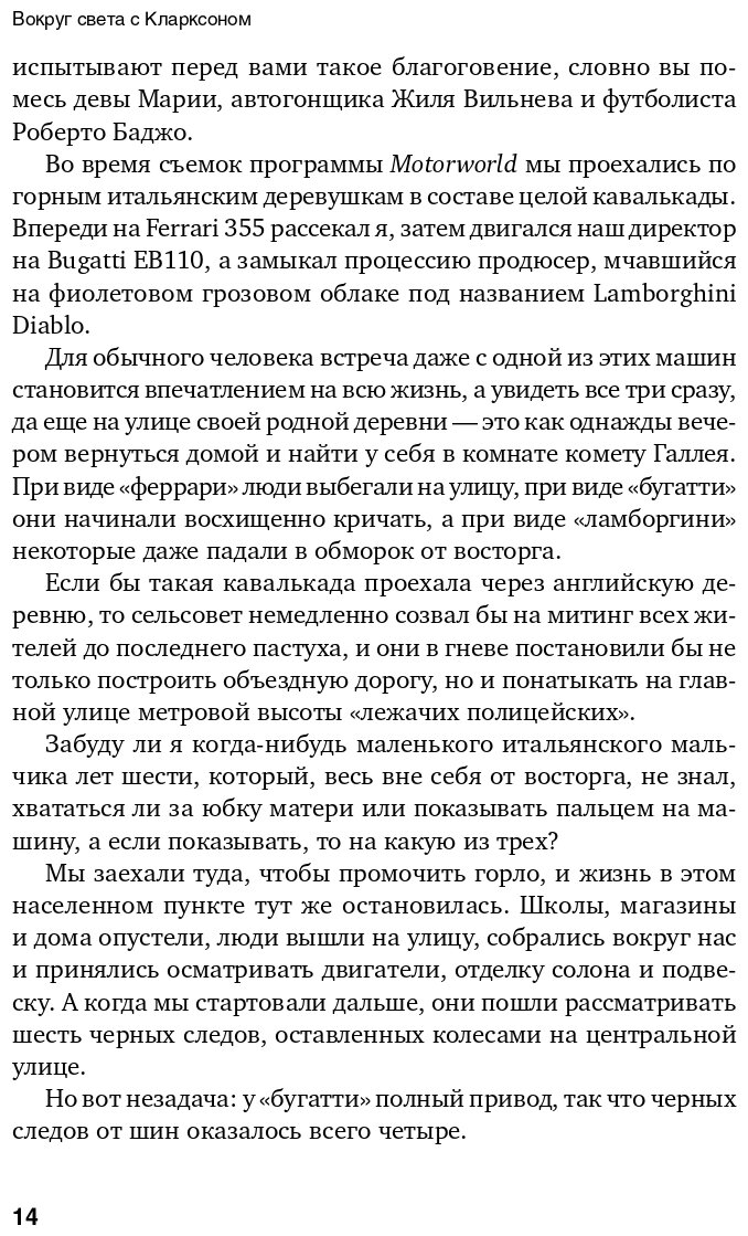 Если автор Джереми Кларксон, то несколько часов увлекательного чтения — гарантировано. Книга написана в формате коротких заметок. В данном случае, это впечатления о странах, в которых автор побывал. О машинах здесь почти ничего нет. Но книга от этого не пострадала. Напротив, Кларксон с узконаправленной тематики перешёл на то, что будет интересно всем.