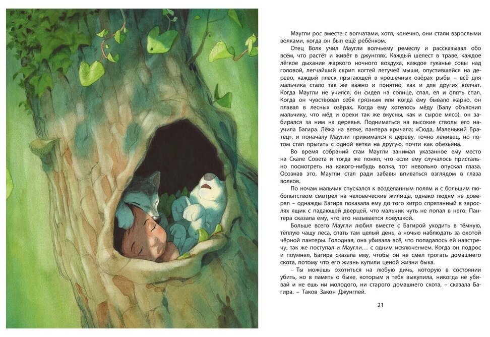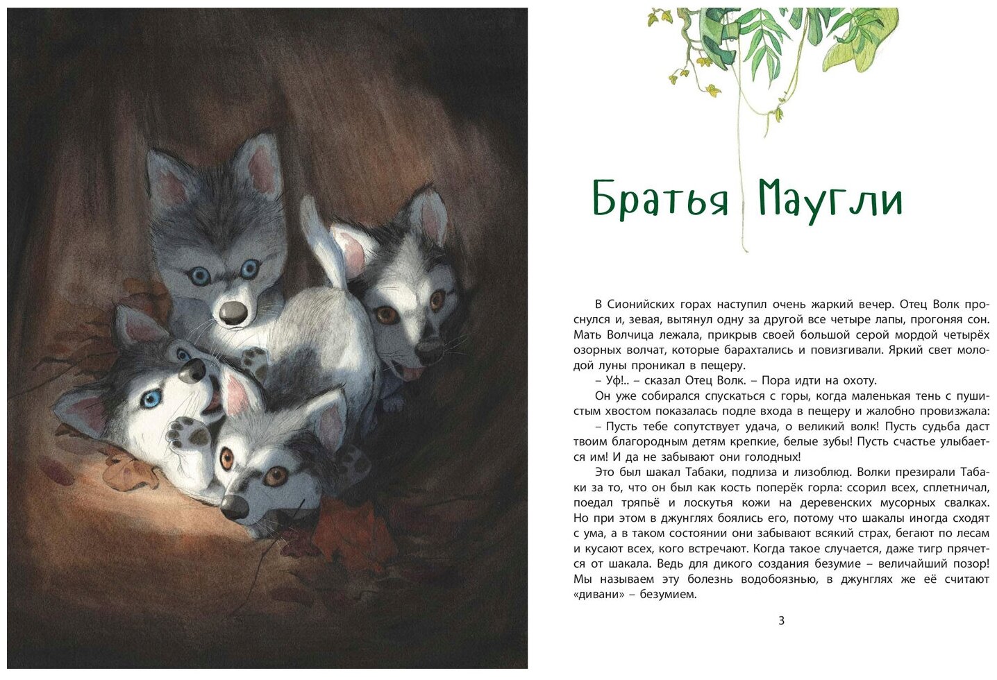 Книга просто великолепная. Приобрела для дочери 3-х лет, она обожат Маугли. Качество бумаги и печать на высоте, очень давно не держала в руках столь качественной книги. Текст достаточно крупный, количество иллюстраций оптимальное, есть картинки на все развороты. К сожалению, времени загружать фото у меня нет, но просто поверьте-это маст-хэв
