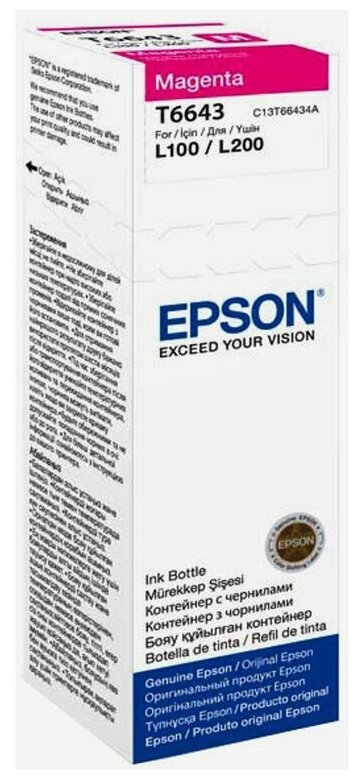 | Модель | Контейнер с пурпурными черниламиT6643 для L100, L200 (C13T66434A) |