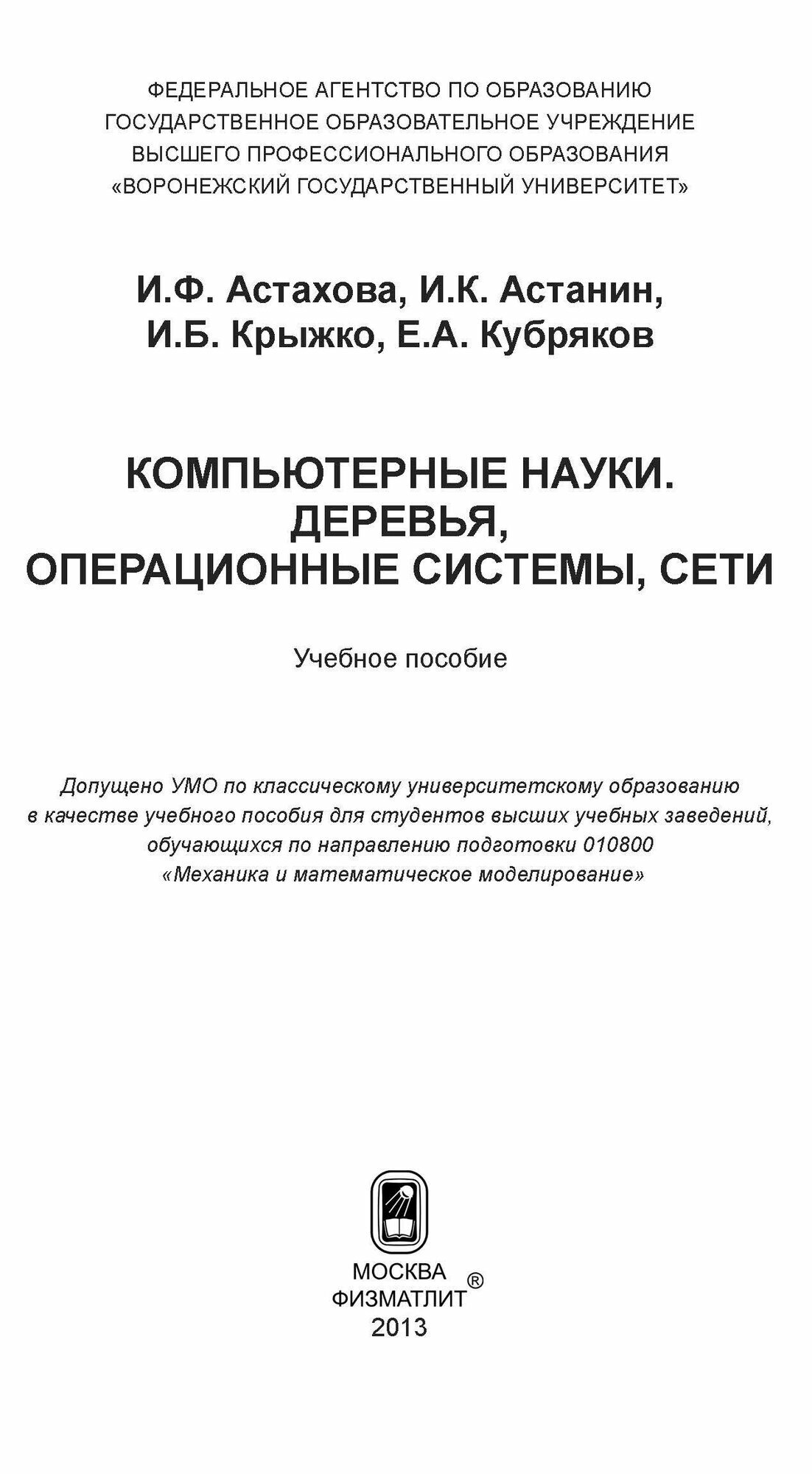 Компьютерные науки. Деревья операционные системы сети (Астахова Ирина Федоровна, Астанин Иван Константинович, Крыжко Игорь Борисович, Кубряков Евгений Анатольевич); Физматлит, 2013
