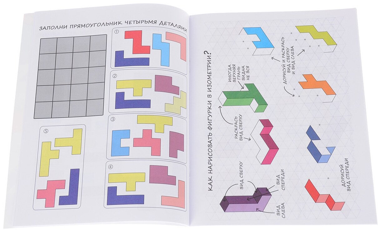 Будет лучше, если Вы сами сперва поиграете немного вместе с ребенком. Вы можете придумывать с ребёнком задания друг для друга и рисовать их по квадратным клеточкам или в изометрии - по треугольным "клеточкам". Дидактические игры, как кубики "Сложи узор", так и катамино, не должны валяться в общем ящике с игрушками, иначе детали растеряются, сломаются и играть по правилам вдвоём уже не получится. Катамино лучше хранить отдельно от других кубиков, на полке с настольными играми. Вот какие задания можно предложить детям: