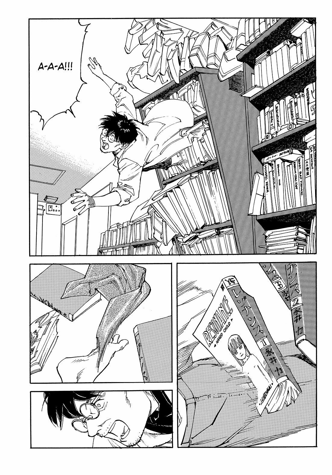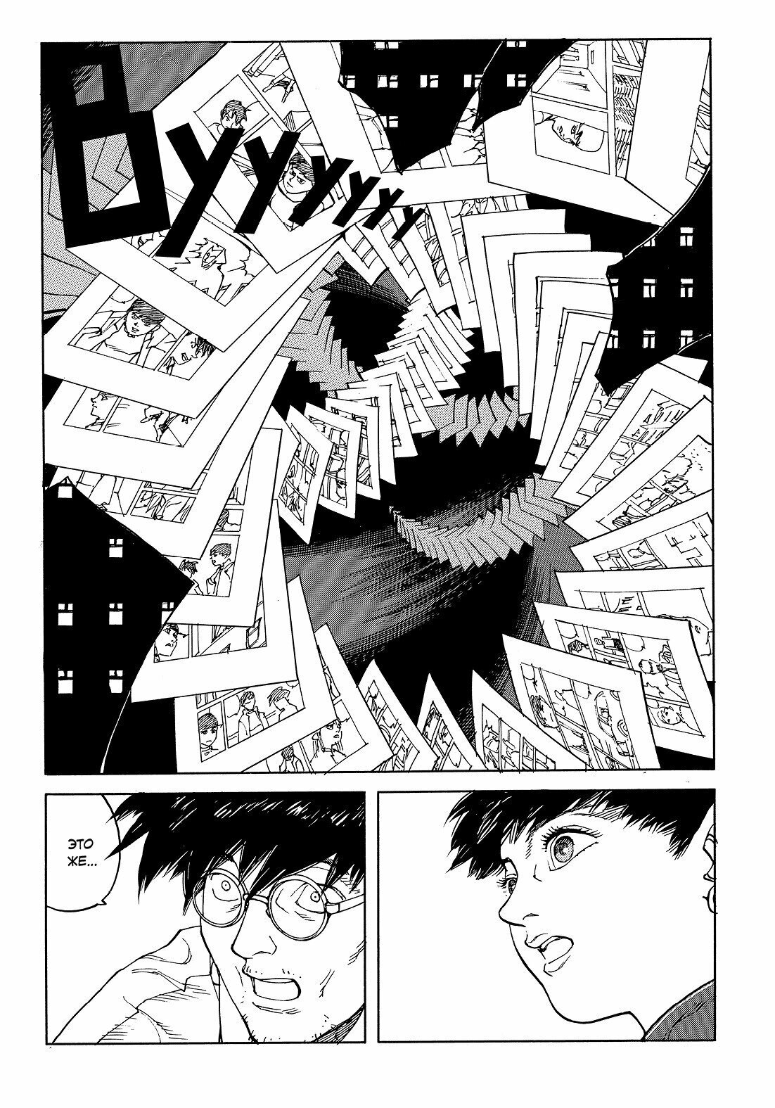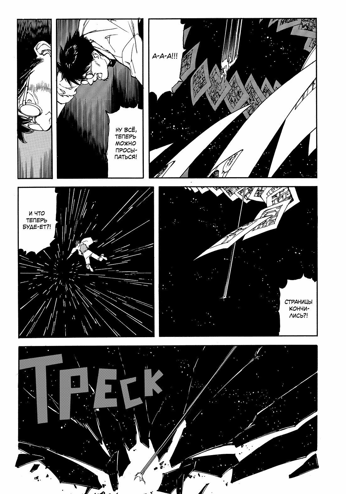 Первые страницы показались мне не очень увлекательными, я ожидала куда большего от "Опуса" Сатоси Кона. Поэтому сначала читать было тяжеловато, но в какой-то момент я поняла, что уже очень увлеклась происходящим, и с жадностью поглощаю страницу за страницей. Сюжет раскрутился, появилась явная цепляющая интрига, за приключениями главного героя стало очень интересно наблюдать, и именно в этот момент всё и оборвалось. Так обидно...