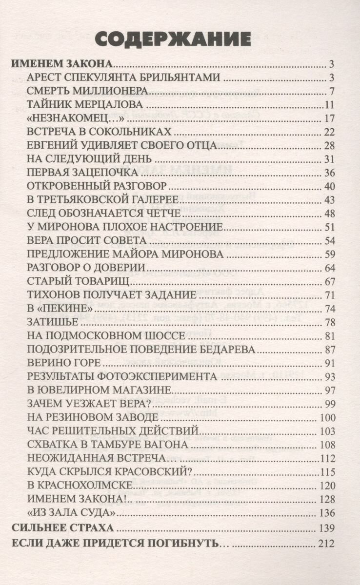 Три повести, вошедшие в книгу известного советского писателя приключенческого жанра Николая Владимировича Томана (1911—1974), посвящены трудным и напряженным будням сотрудников органов МВД и уголовного розыска. Первая — «Именем закона» — о разоблачении шайки расхитителей государственной собственности, занимавшихся махинациями с сырьем на резиновом заводе и фабрике ширпотреба. Вторая — «Сильнее страха» — о том, как работники МУРа помогают одному из подростков освободиться от влияния рецидивиста, вовлекшего его в свои преступные дела, а затем выводят на чистую воду уголовника, пытающегося сформировать из молодых ребят группу правонарушителей. Третья — «Если придется погибнуть...» — о том, как инспектор милиции, опираясь на помощь заводских дружинников, ведет поиск и задерживает опасного преступника. Напряженность сюжета, острота ситуаций и положений, стремительность действий делают произведения этого автора интересными и увлекательными.
