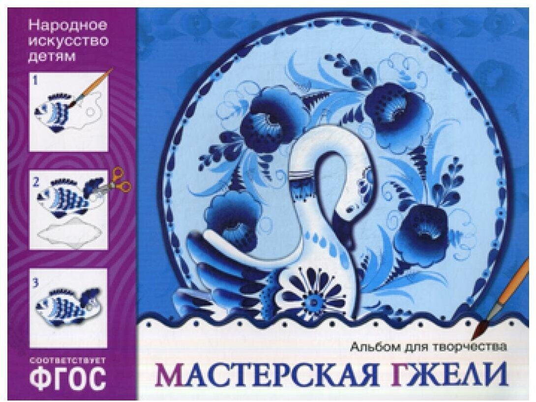 Альбом для творчества «Мастерская гжели» серии «Народное искусство – детям» предназначен для обучения детей дошкольного и младшего школьного возраста основам изобразительного искусства и художественного труда.
