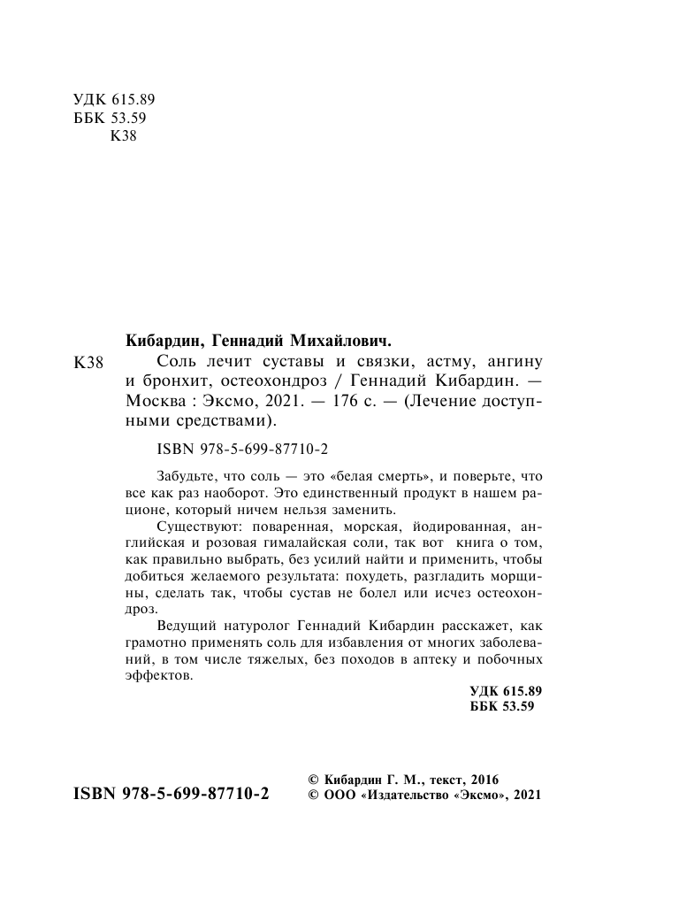 Соль лечит суставы и связки астму ангину и бронхит остеохондроз (Геннадий Михайлович Кибардин); Эксмо, 2021