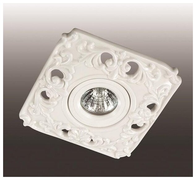 Встраиваемый точечный светильник Novotech Ola Светильник сделан из фарфора. Основным его преимуществом является то, что со временем он не теряет таких своих качеств, как крепость, плотность, прочность, блеск и полупрозрачность. Не подвластен фарфор и коррозии.