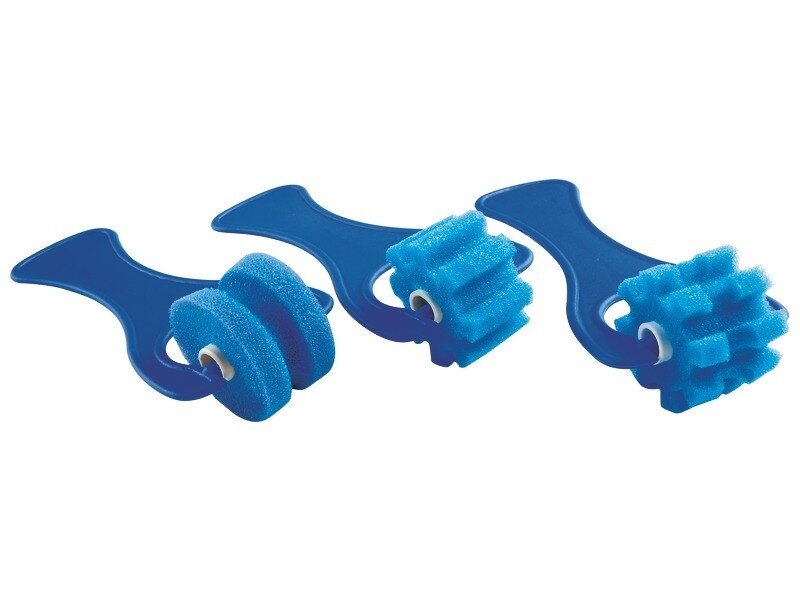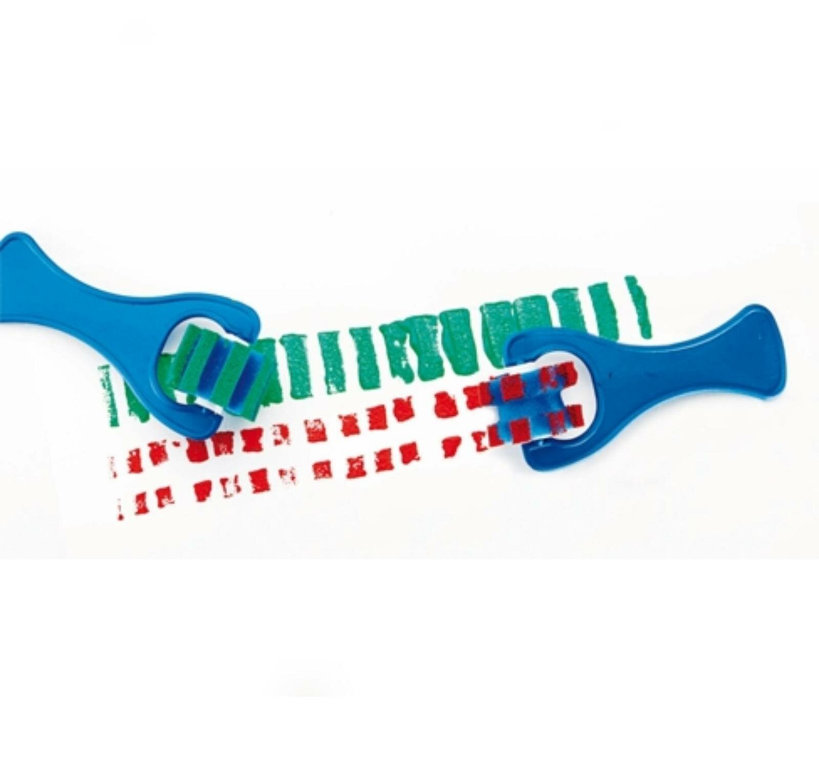 Фигурные валики на удобной пластмассовой ручке позволяют проводить разнообразные интересные дорожки и линии. Прекрасно подходят для рисования и раскрашивания красками или водой с самыми маленькими детьми. Ширина валиков 2,5 см. После использования краску необходимо смыть теплой водой и высушить валики. Имеют российскую сертификацию для маленьких детей от двух лет.