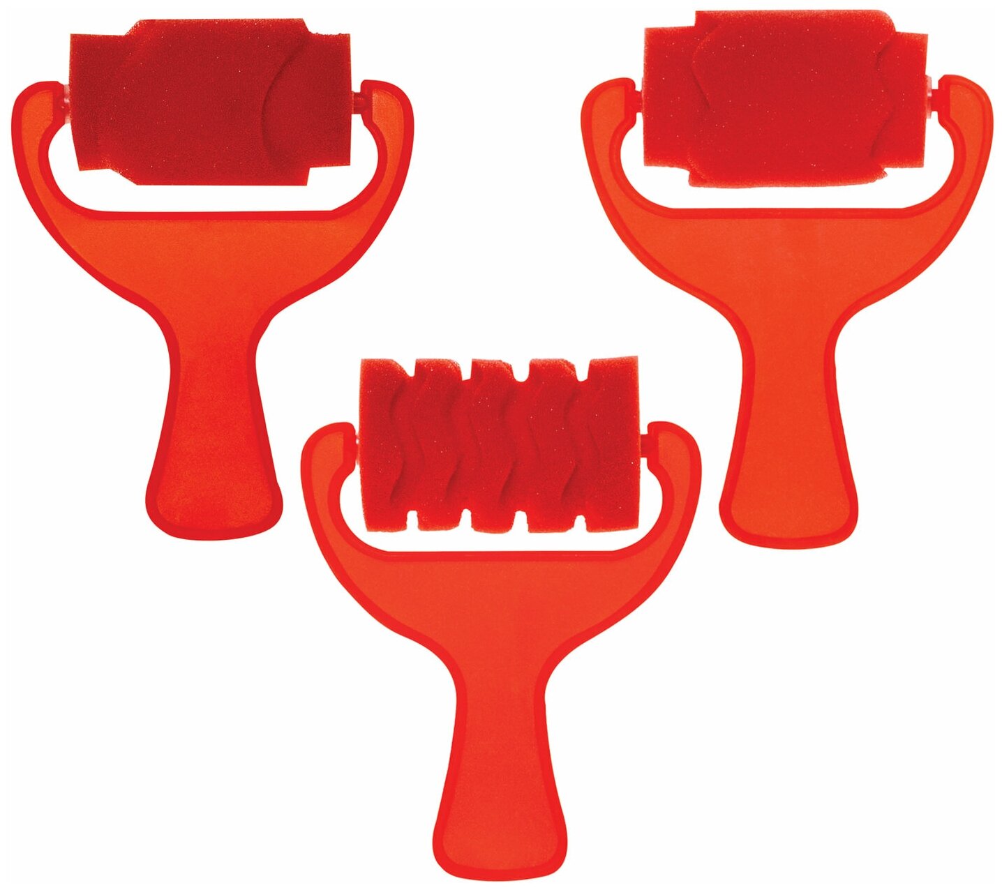 Широкие фигурные валики на удобной пластмассовой ручке позволяют проводить разнообразные интересные дорожки и линии. Прекрасно подходят для рисования и раскрашивания красками или водой с самыми маленькими детьми. Ширина валиков 7 см. После использования краску необходимо смыть теплой водой и высушить валики. Имеют российскую сертификацию для маленьких детей от двух лет.