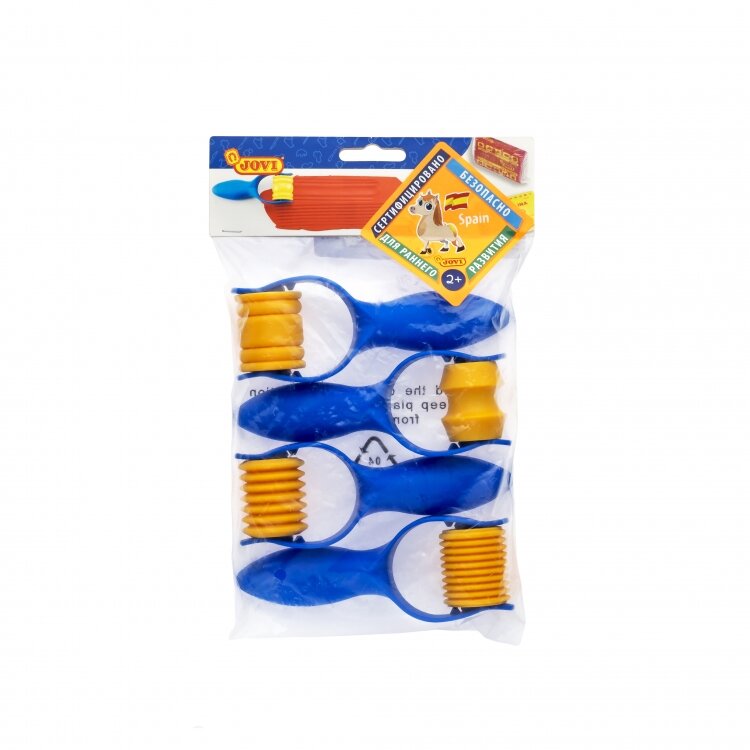 Фигурные валики-роллеры для работы с пластилином и пастой для моделирования. Помогают придавать текстуру и объем вашим поделкам. Валики будут незаменимы при работе с детским тестом JOVI. Как пользоваться валиками-роллерами? Раскатайте пласт теста или пластилина и проведите роликом по прямой от края до края пласта. Получившийся узор можно обрезать стеком или резаком JOVI.