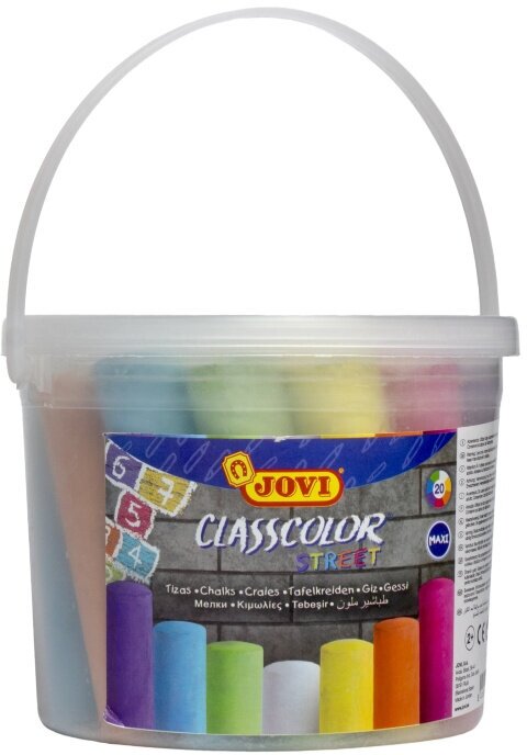 Толстый мел для асфальта имеет российскую сертификацию для маленьких детей от двух лет. Большой круглый мел для асфальта изготовлен из сульфата кальция. Таким мелом интересно рисовать не только на асфальте и школьных досках, но и на картоне. Рисование на асфальте – уникальное занятие для маленьких детей, ведь там малыш не ограничен листом бумаги, а имеет огромное поле для проявления своей фантазии, что крайне важно для развития ребенка. Отдельный плюс для родителей, которые могут не опасаться, что ребенок испачкает мелом ковры, стол или стены. А с рук и одежды этот мел очень легко смывается. Разные цвета помогают создавать живые красочные рисунки. Легко стирается и не царапает поверхности. 20 мелков семи различных цветов в удобном пластиковом ведре с крышкой: 2 мелка белого цвета и по 3 мелка желтого, оранжевого, розового, зеленого, синего и фиолетового цвета. Благодаря удобному пластиковому ведерку с ручкой мел можно брать с собой в дорогу и не бояться, что он расстеряется. К тому же малышу так нравится быть самостоятельным и нести самому такое ведерко с мелом! Размер мелка 2.5 см х 10.5 см.