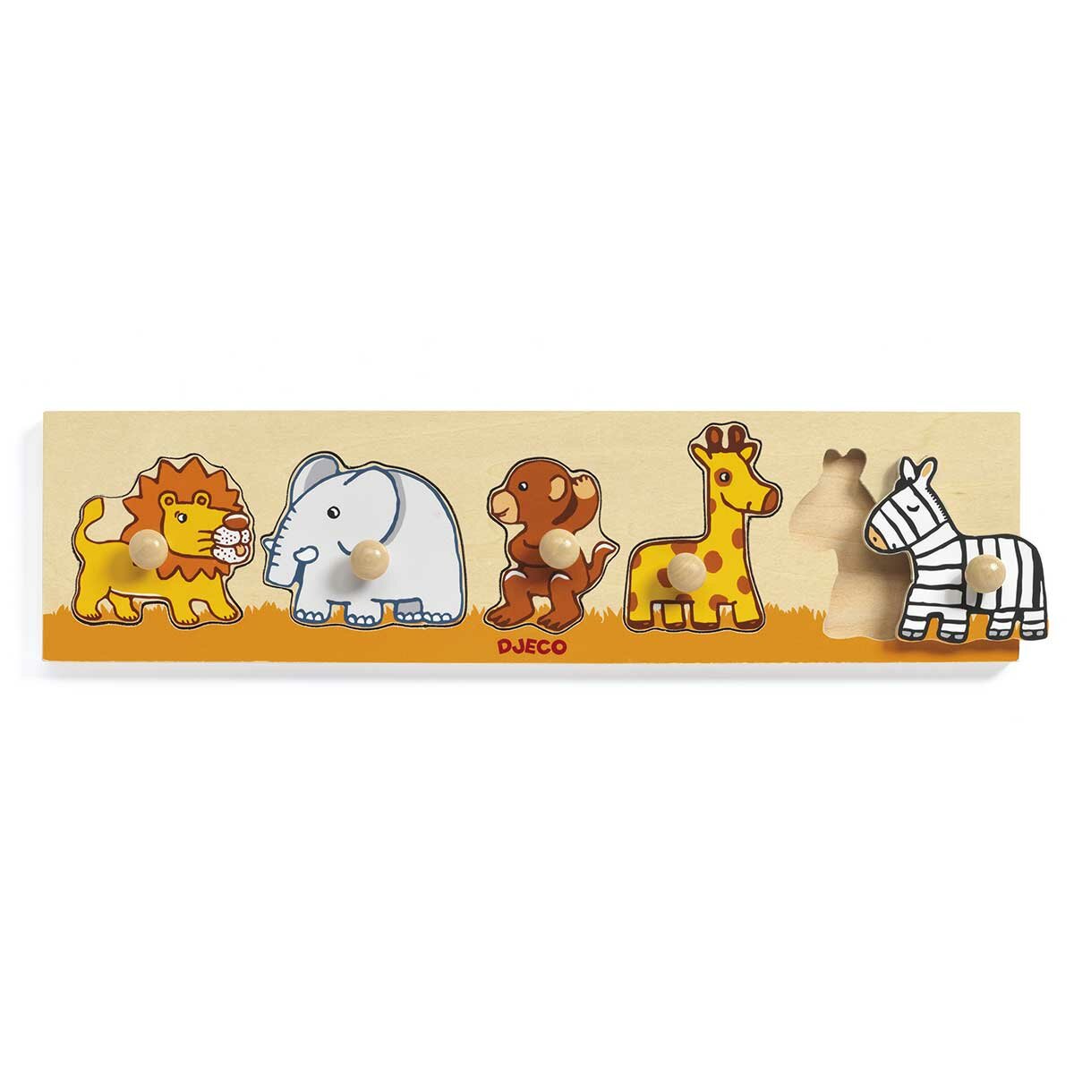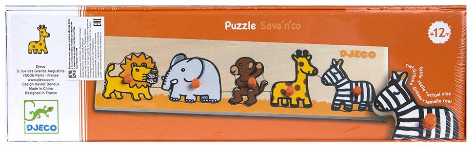 Пазл Саванна — может стать самой любимой игрушкой для Вашего малыша! Деревянная рамка-вкладыш Саванна- игра с красочным деревянным пазлом-сортировкой "Саванна" станет самой любимой для Вашего малыша! Он с удовольствием станет рассматривать, изучать и подбирать место для каждого из пяти животных саванны: львенка с рыжей гривой, слоненка, веселой обезьянки, полосатой зебры и длинношеего жирафа. Круглые ручки на фигурках сделаны специально для удобного захвата маленькими детскими пальчиками. Деревянная рамка-пазл от компании DJECO привлекает внимание своими яркими сочными красками, забавными рисунками и высоким качеством материала. Деревянные игрушки экологически безопасны и излучают положительную энергетику природы. Игра с пазлами способствует развитию сенсомоторной координации, мелкой моторики рук. Деревянные рамки-вкладыши обучают основам классификации и логике, ориентации на плоскости, учат различать предметы по силуэтам.