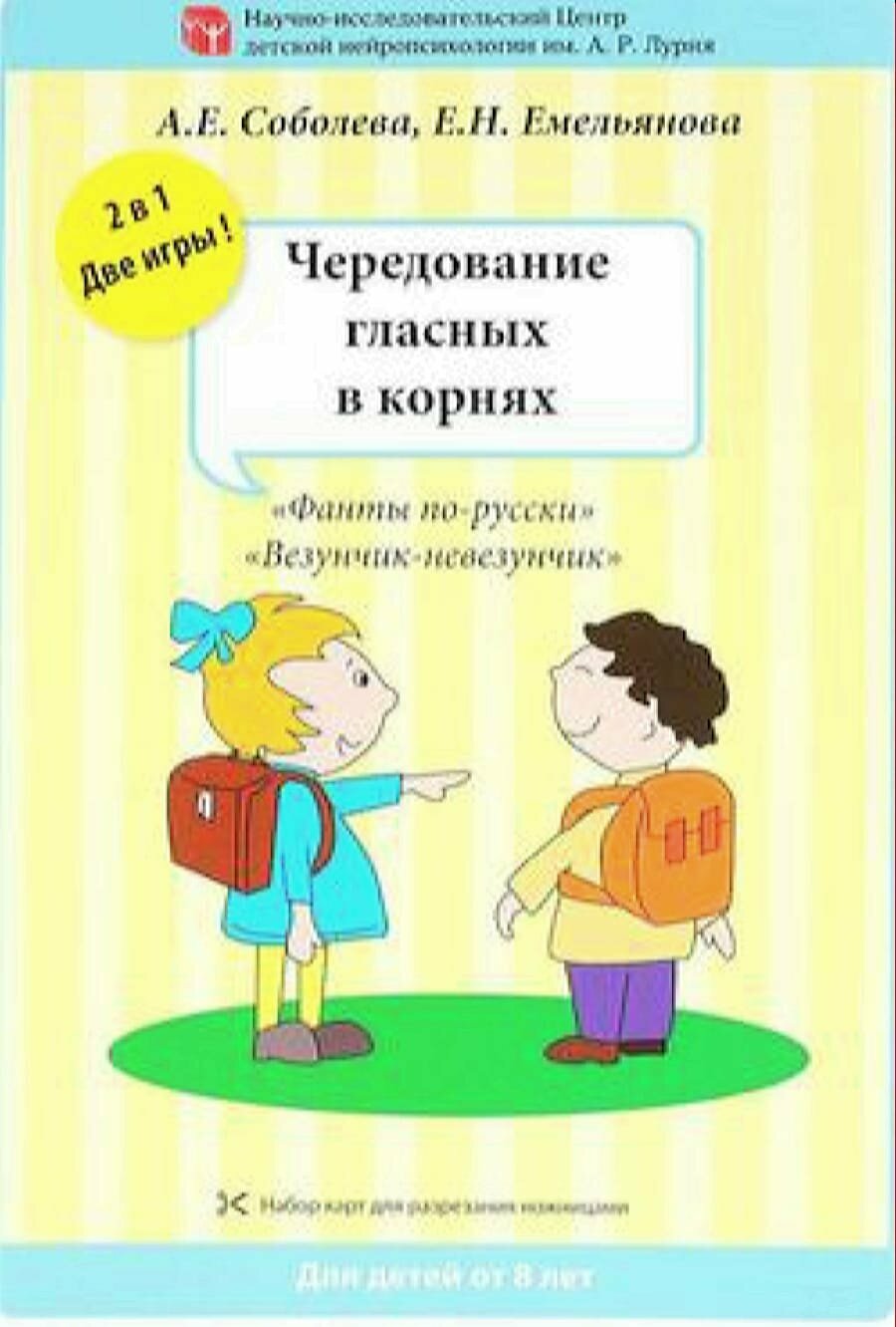 Нейропсихологические игры от экспертов в области гармоничного детского развития. Разработаны специалистами Научно-исследовательского Центра детской нейропсихологии им. А.Р. Лурия. Уникальная современная методика поможет ребёнку овладеть основами русского языка. Игры серии "Русский язык: путь к успеху" повысят мотивацию к учёбе, помогут ребёнку стать успешнее в школе и полюбить занятия русским языком, Дети не просто запомнят правила, они научатся понимать, почему слово нужно писать именно так. Две игры в наборе: Игры "Везунчик-невезунчик" и "Фанты по-русски" - научат понимать правила правописания корней с чередующимися согласными и помогут их запомнить. Детям от 8 лет. - 142 карточки со словами. - 12 карт с правилами. - 8 "суперкарточек" с животными. - От 2 до 8 игроков.