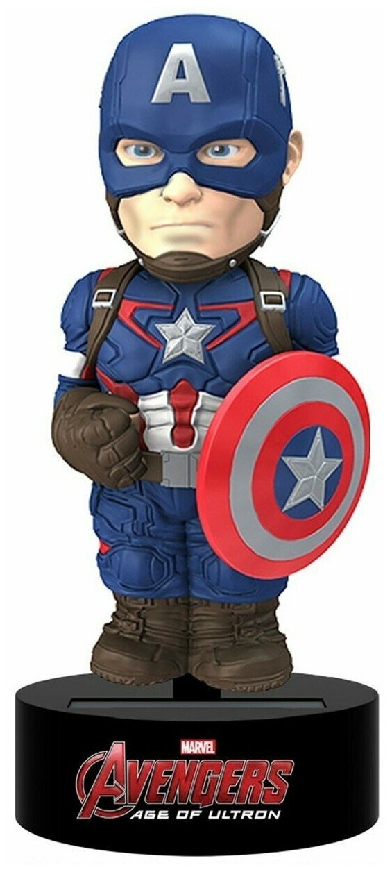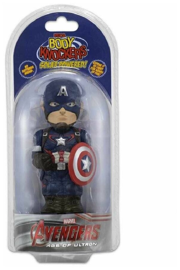 Neca Captain America – фигурка, дополненная устойчивой подставкой, оборудованная солнечной батареей и способная раскачиваться из стороны в сторону. Она изображает Капитана Америку, супергероя из комиксов издательства Marvel Comics, также появляющегося в художественных и мультипликационных фильмах и видеоиграх. Его настоящее имя – Стив Роджерс, он был болезненным юношей, желающим вступить в армию, и для достижения своей мечты согласился на участие в эксперименте. Особая сыворотка добавила ему силы и улучшила выносливость, скорость и ловкость.