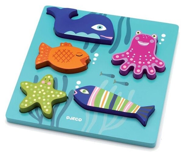 Игрушка из дерева Djeco Сортировка-пазл Морские животные (01024)