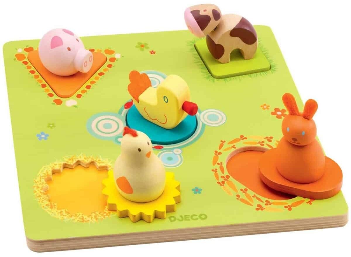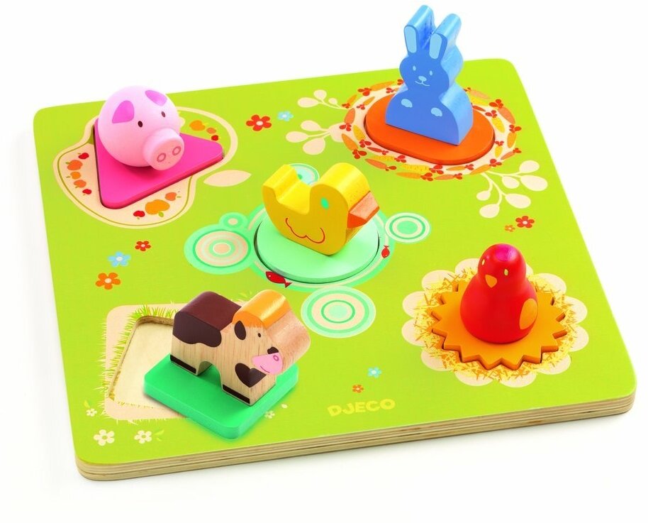Игрушка из дерева Djeco Сортировка-пазл Утка и друзья (01030)