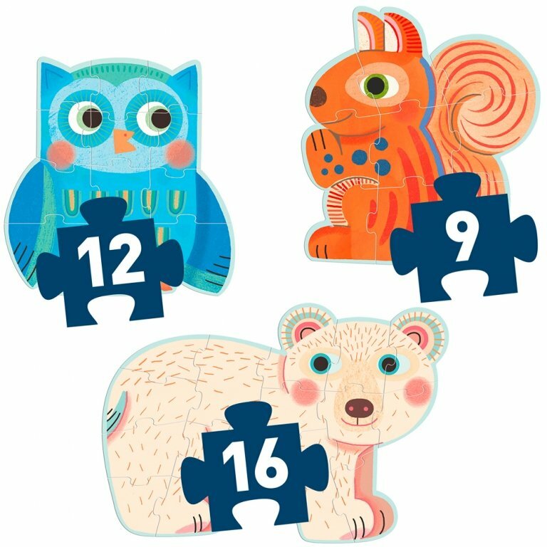 Пазл В лесу от французского производителя игрушек Djeco – необычный и интересный пазл для малышей с разными уровнями сложности, который станет превосходным развивающим подарком для каждого ребенка. В наборе ребенок найдет множество красочных интересных деталей, с помощью которых он должен собрать 3 картинки с изображениями белочки, совы и медвежонка. Картинки отличаются уровнем сложности. 1 картинка из 9 деталей – легкий уровень, 2 картинка из 12 деталей – средний уровень, 3 картинка из 16 деталей – сложный уровень. Собранными картинками можно украсить детскую комнату малыша. Пазл прекрасно развивает логику и сообразительность, тренирует моторику детских ручек и учит малыша внимательности и усидчивости. Пазл продается в красивой коробке и идеально подходит для подарка. Все детали изготовлены из высококачественных материалов.