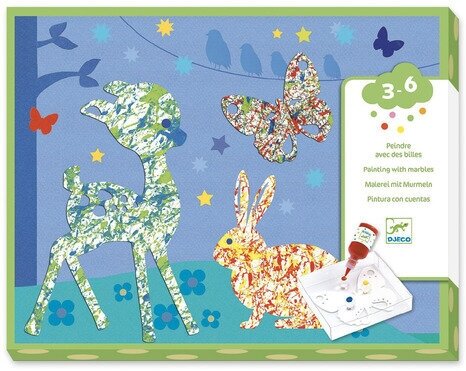 | Состав набора | 8 фоновых изображений, 24 контура животных, 4 тюбика с краской, 3 шарика, коробка для рисования, пошаговая инструкция. |