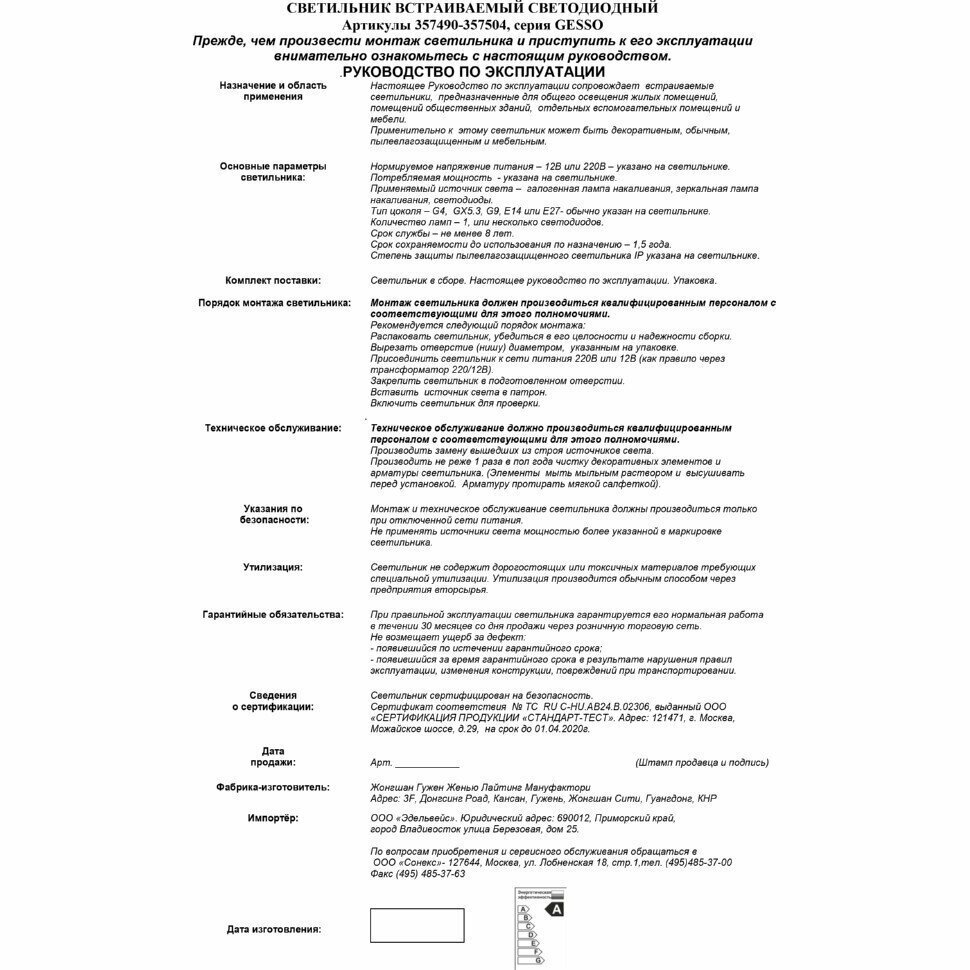 | Артикул | 357497 |