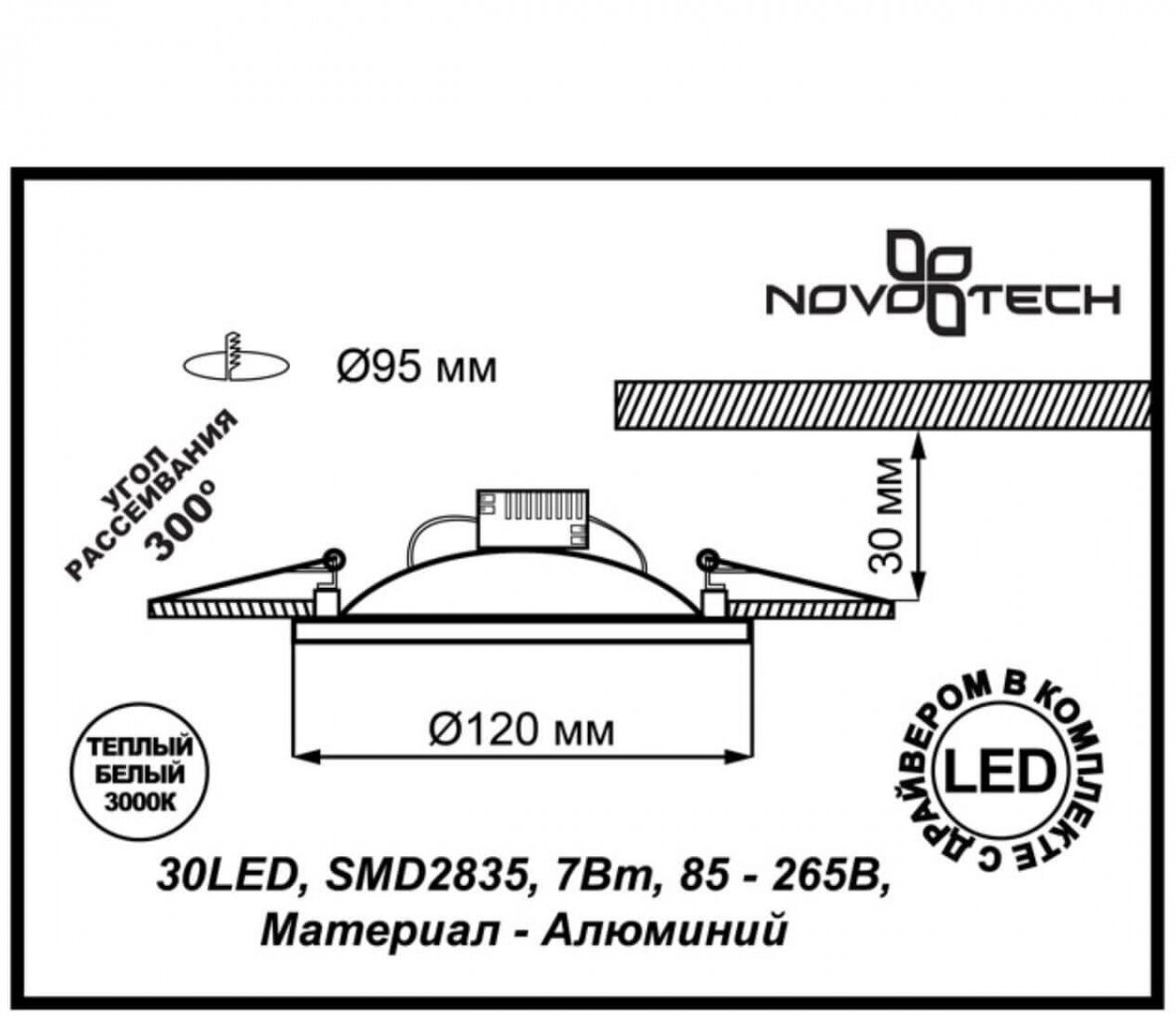 | Назначение | Ввстраиваемый светодиодный светильник |